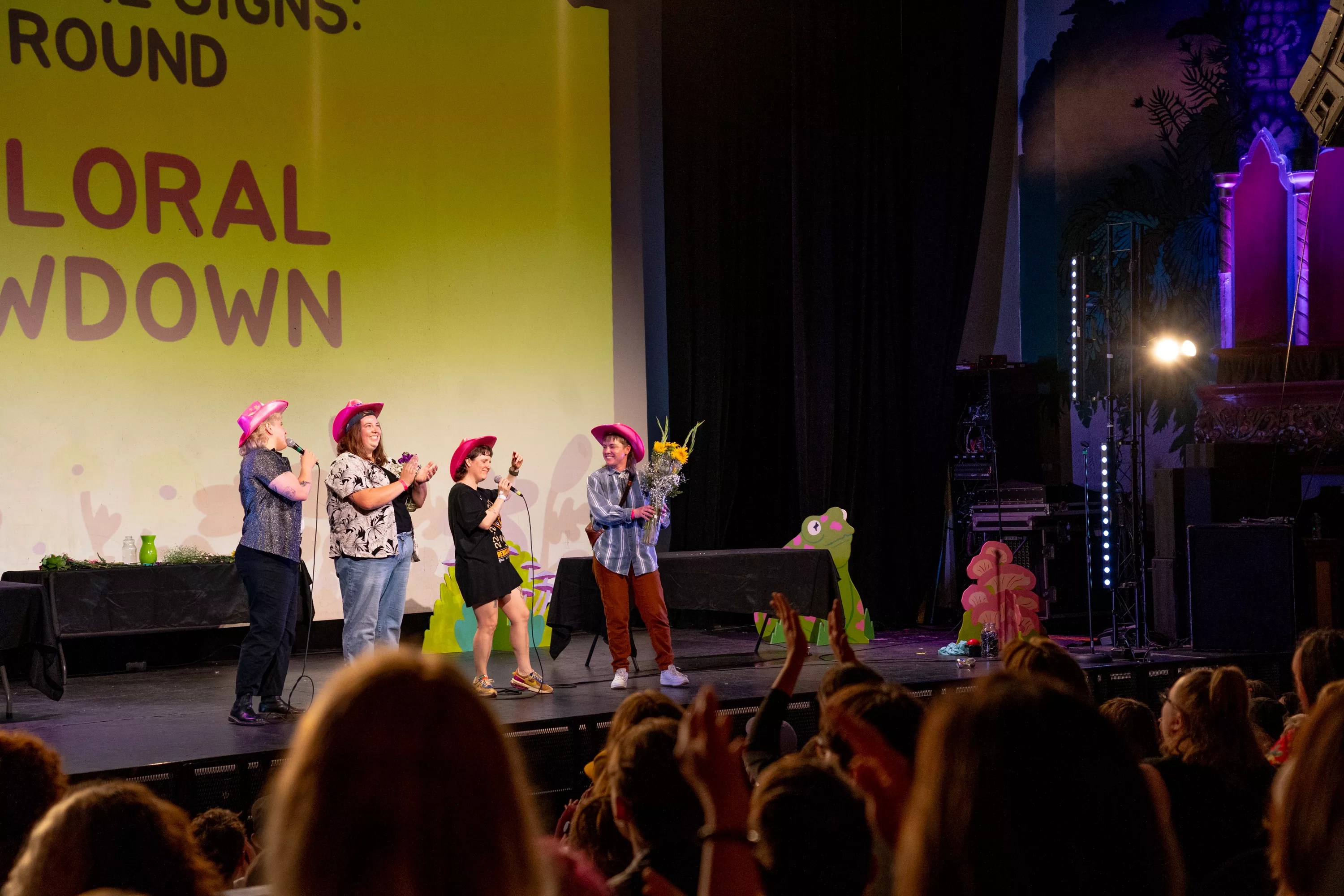 Dyketopia is a game show swirled with standup comedy and sprinkled with improv and drag, creating a smorgasbord performance that’s utterly unique and entirely gay. Robinson and McLachlan let their imaginations run uninhibited and spend a copious amount of time dreaming up games that poke at queer tropes while simultaneously building a sense of camaraderie. McLachlan’s personal favorite game is Battle of the Mental Illnesses, where people with ADHD compete with people with depression in a trivia and relay race tournament.