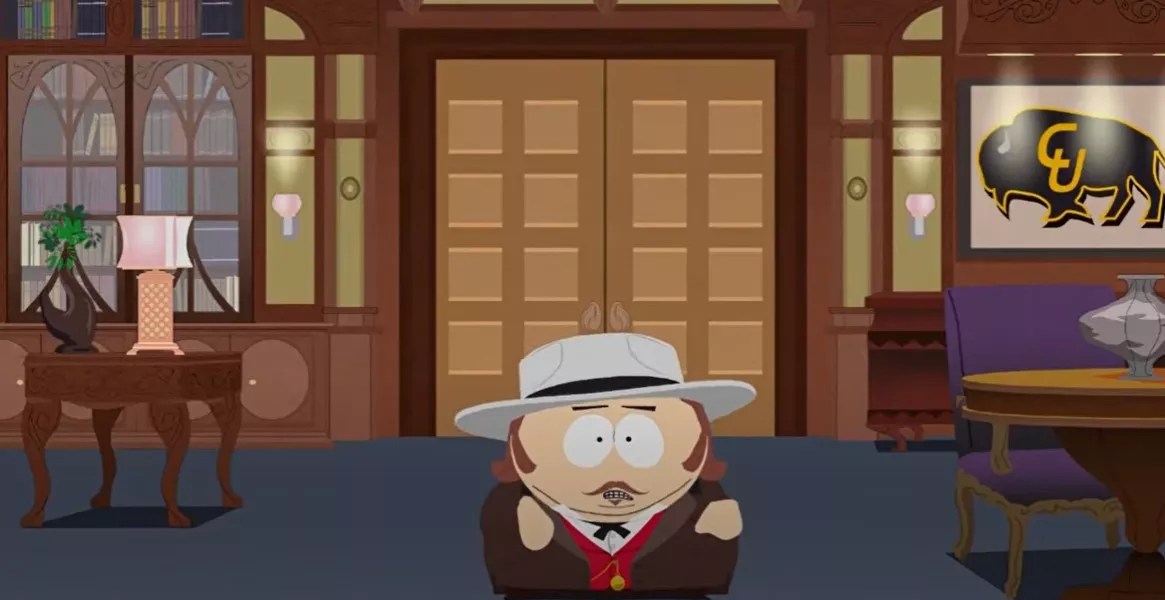 Parker and Stone’s alma mater makes a bumpersticker when hippies take over South Park before Cartman drives them out in season nine favorite “Die Hippie, Die.” But it gets a starring role in season fifteen, when Cartman creates a nonprofit called the Crack Baby Athletic Association after he sees a commercial styled in the form of the emotionally manipulative Sarah McLachlan ASPCA commercials, but with crack babies instead of puppies. He makes a business out of it by recruiting unwanted babies to play “crack baby basketball,” in which they fight over a ball of crack cocaine, and Kyle joins the operation, saying they’re not exploiting the crack babies, but giving them opportunities to be famous. (The episode aired in 2011, when there was an uproar over college athletes not getting paid while their images were sold.) Cartman ends up proposing a trade deal to the dean at CU – a scene that takes place in the dean’s office – but is swiftly castigated and told to leave after he keeps referring to student athletes as “slaves.”