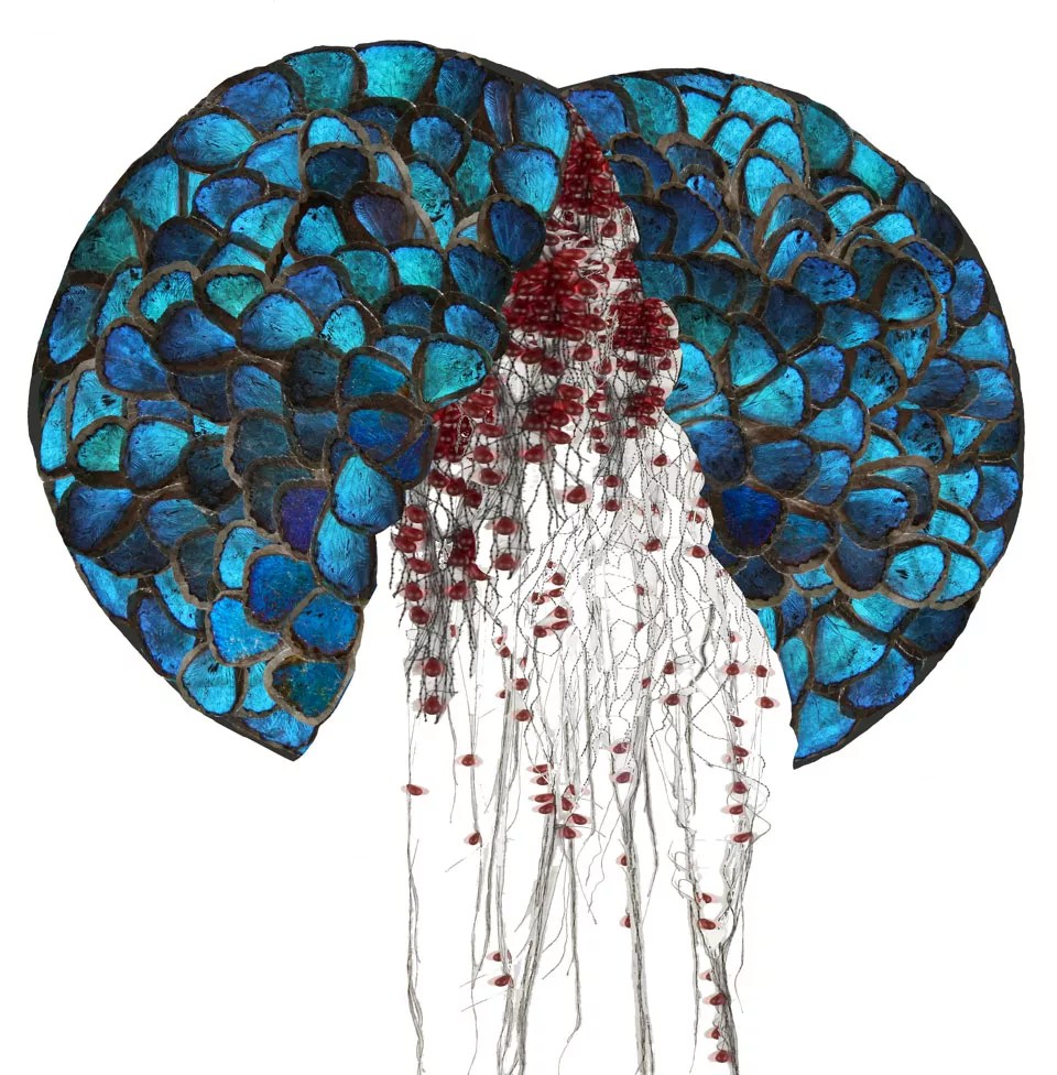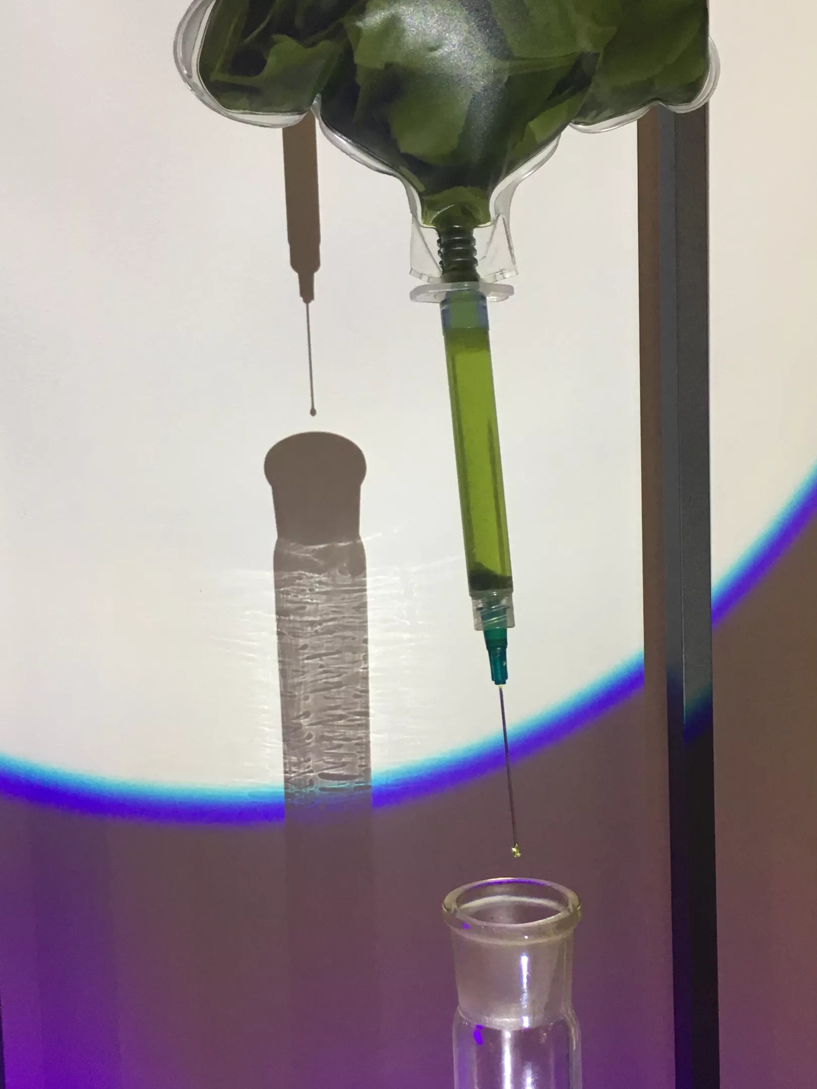 The works in Axis Mundi take many forms and levels of complexity. Some, like Tarah Rhoda’s “Ourglass,” look like a science experiment, Rosburg notes. For that installation, a laboratory setup extracts chlorophyll from a bunch of spinach in an IV bag, transforming the resulting liquid into a deep red solution resembling hemoglobin as it drips into a beaker. Darya Warner, on the other hand, suspends bioluminescent algae inside lightbulbs and encourages viewers to interact with the natural light show.