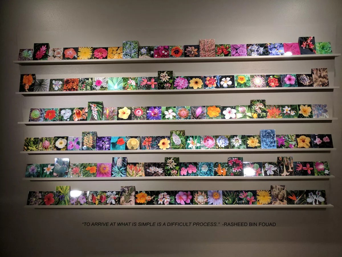 In the upper galleries and extending into the Theater Gallery, Stop/Look/See at first looks like a group show because there’s so much material with so many different styles and approaches. But this staggering volume comes from just one photographer, James Milmoe, and it represents just a tiny fraction of his output. The scope makes sense, though, when you consider that the Golden-based photographer has been active for more than fifty years. “Flowers – Maui, Vail, Denver,” by James Milmoe. Courtesy the Arvada Center