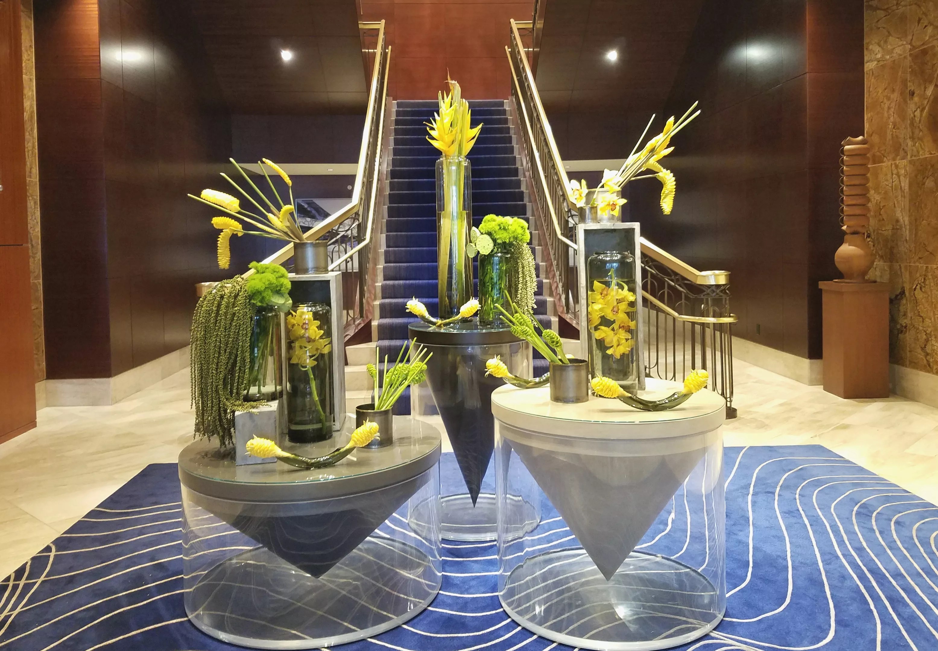 Though not technically an art piece, the changing flower arrangements by the Perfect Petal make a real statement.