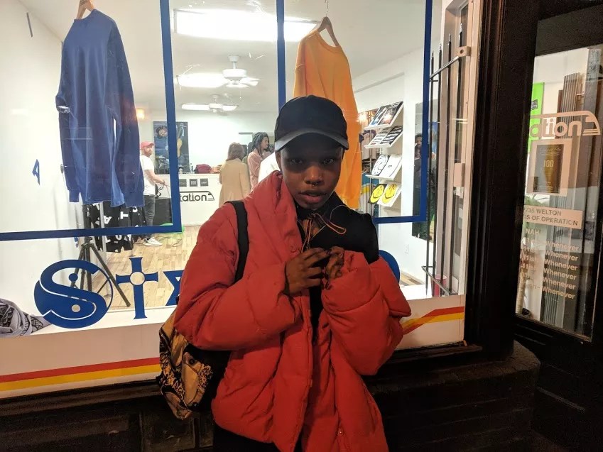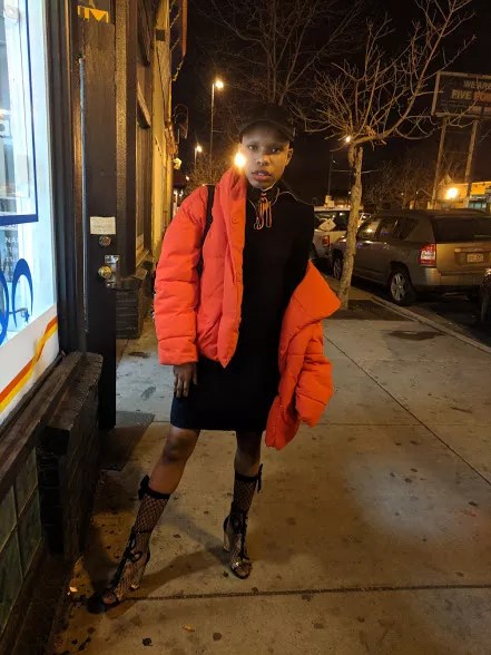 The devil is in the details, and those who apply that truism to fashion usually do so with style. Ryne Michelle definitely does. Originally from Little Rock, Arkansas, last summer Michelle moved to Denver, where she dabbles in freelance writing and modeling. At a party thrown by Station, the Five Points streetwear boutique, to release its new sweatshirt collection, we spotted Michelle. She stood out from the crowd in see-through heels, an oversized bomber jacket and a tied-up choker. We stopped to speak with Michelle about what inspires her intriguing aesthetic. Ryne Michelle’s choker is Fenty X Puma and designed by one of Michelle’s style icons, Rihanna. Photo by Mauricio Rocha