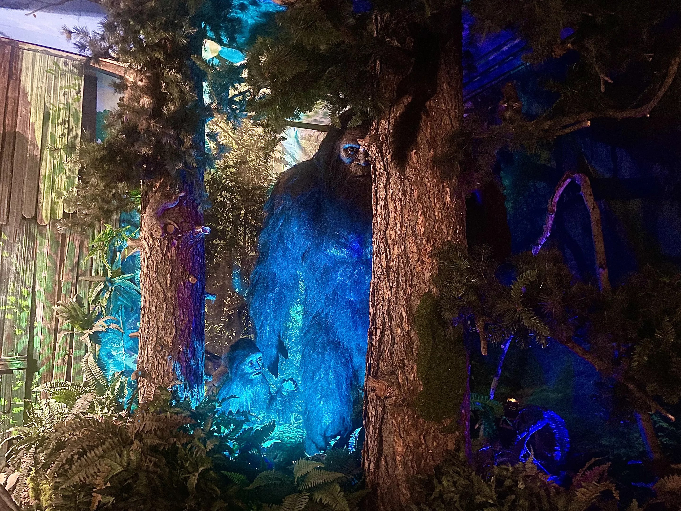 The main draw here is the museum, which includes a history of bigfoot sightings, casts made from bigfoot tracks (both of “babies” and full-growns), plaques explaining phenomena attributed to bigfoot and a large map that guests can mark with pins based on their sightings. Red pins symbolize visual sightings, black indicates footprints, blue reports rocks thrown (a classic bigfoot move), green represents those who’ve heard a bigfoot (via howls or knocking on trees), and yellow attests to breaks in trees, or trees twisted into archways or a tipi shape (these are thought to be bigfoot nests). Headphones hanging on one wall reveal recordings of bigfoot sounds – a loop of haunting, whooping howls.