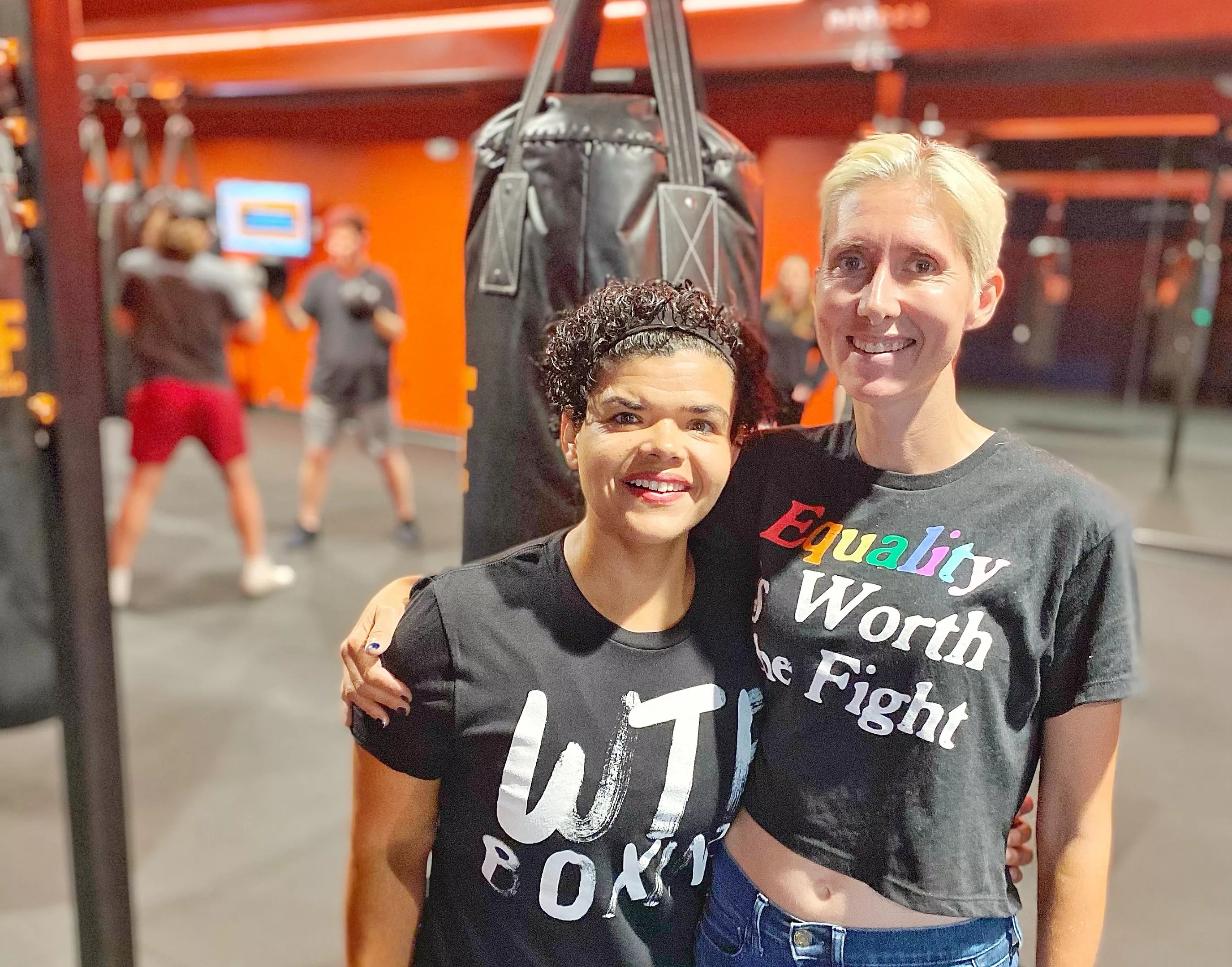 Santiago and Stork: Worth the Fight is a boxing fitness studio that appeals to beginners and more experienced athletes alike. We aim to be inclusive, to offer a fun, empowering workout that inspires people to come back. We don’t believe in the elitism that you experience in other gyms sometimes, where you have to work out all the time just to come to the gym. As gay women, we have been to gyms that are not that inclusive, and so it’s very important to us that ours is.