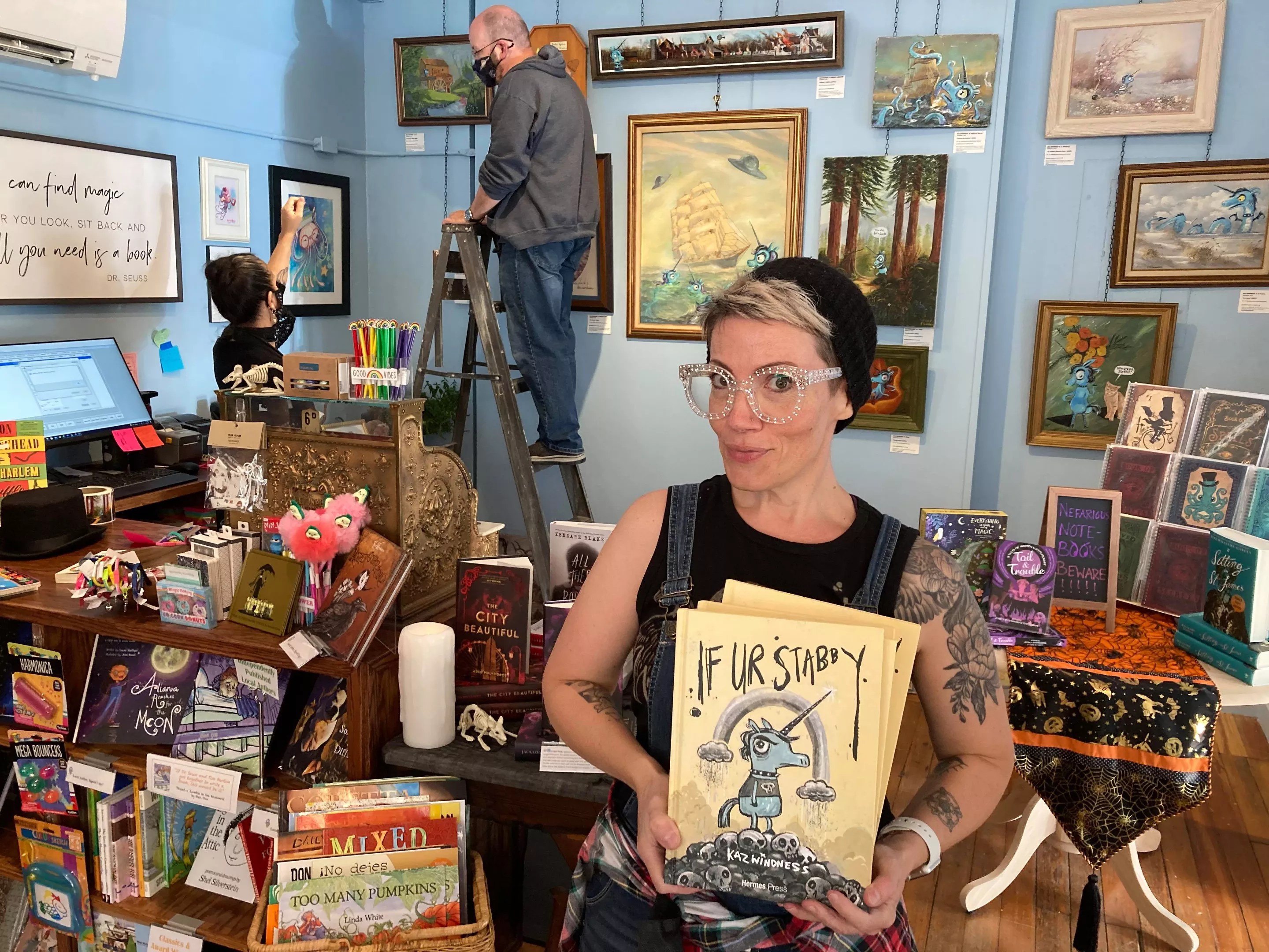 “I just kind of looked at it and thought it would be fun to add siren Stabbys that would take down the ship,” she says. Stabby, an anti-social goth unicorn with a dark sense of humor, is a character that the 47-year-old and openly autistic artist admittedly based on herself. “Stabby is basically me,” jokes Windness.”He wants to be left alone most of the time, and is very horns first!”
