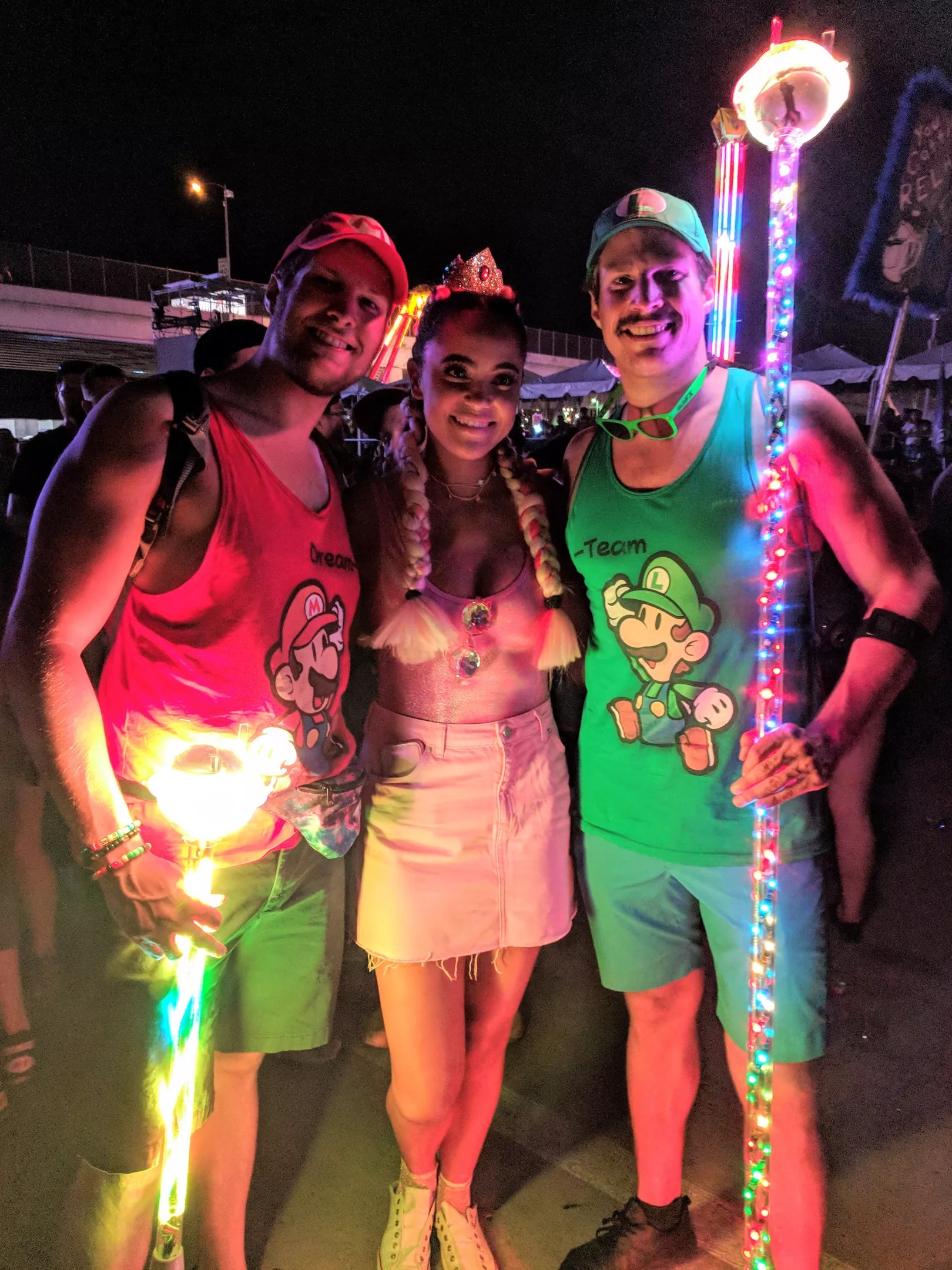 My twin brother and I grew up playing Mario Bros. games. We wanted to go as them, but with a modern, EDM-style twist.