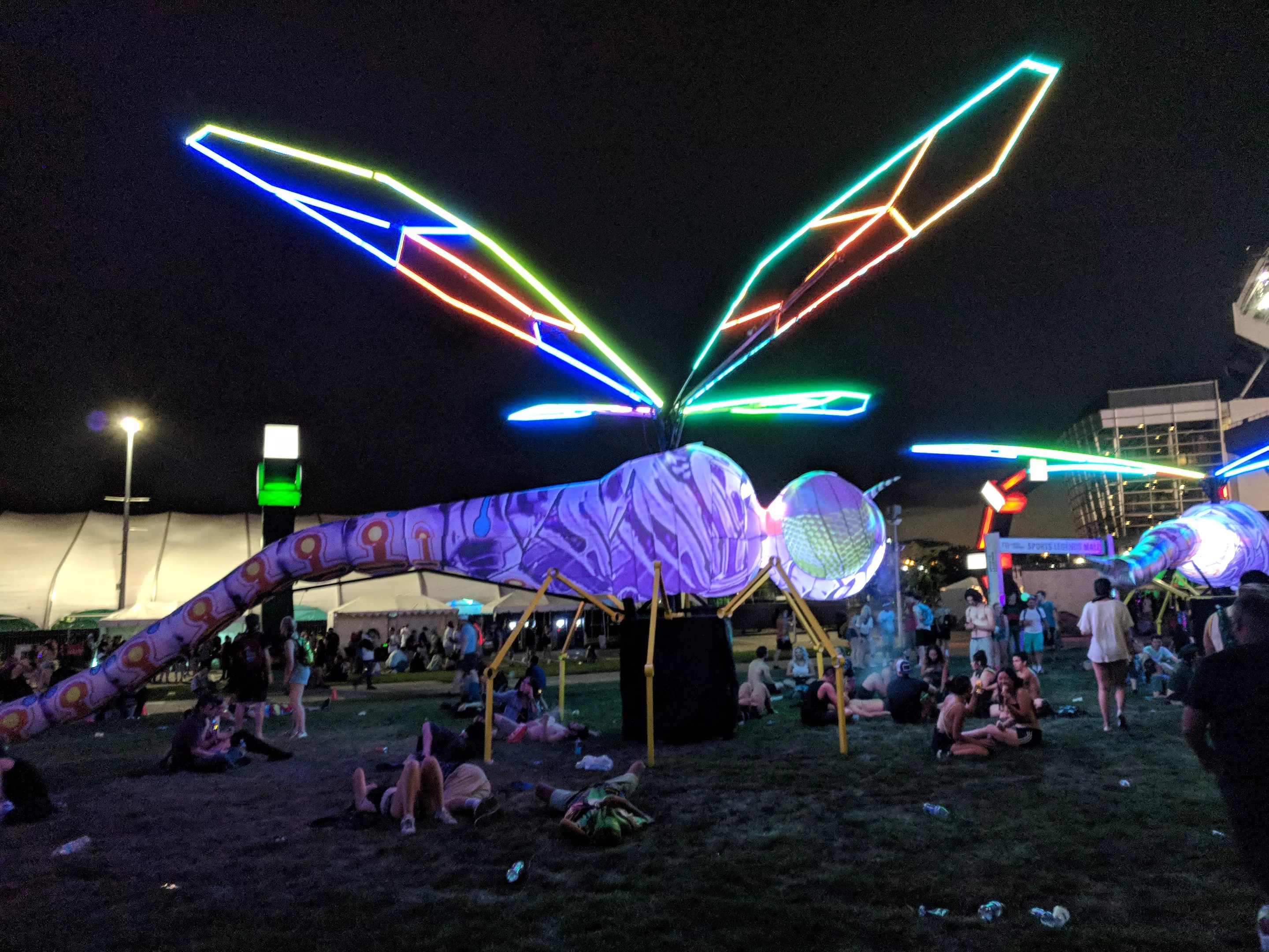 Once the sun went down, the dragonfly sculptures lit up the festival park.
