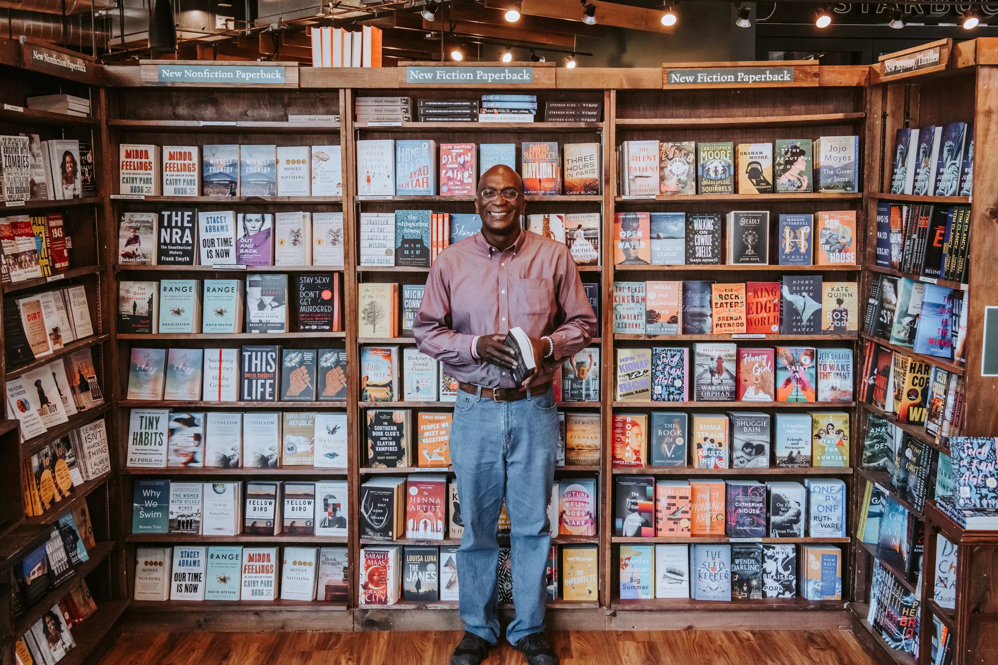 Anyone who’s been to one of the primary Tattered Cover shops since the ’90s has walked over the green carpeting marked by a history of muddy shoes and coffee spills. The floors of the new store do have some of that carpeting as a nod to that past, but most of the space is covered in hardwood, offering a more modern look and the possibility of cleaner floors than at either the East Colfax Avenue or 16th Street Mall shops. Kwame Spearman is Tattered Cover’s new CEO. Yumi Matsuo