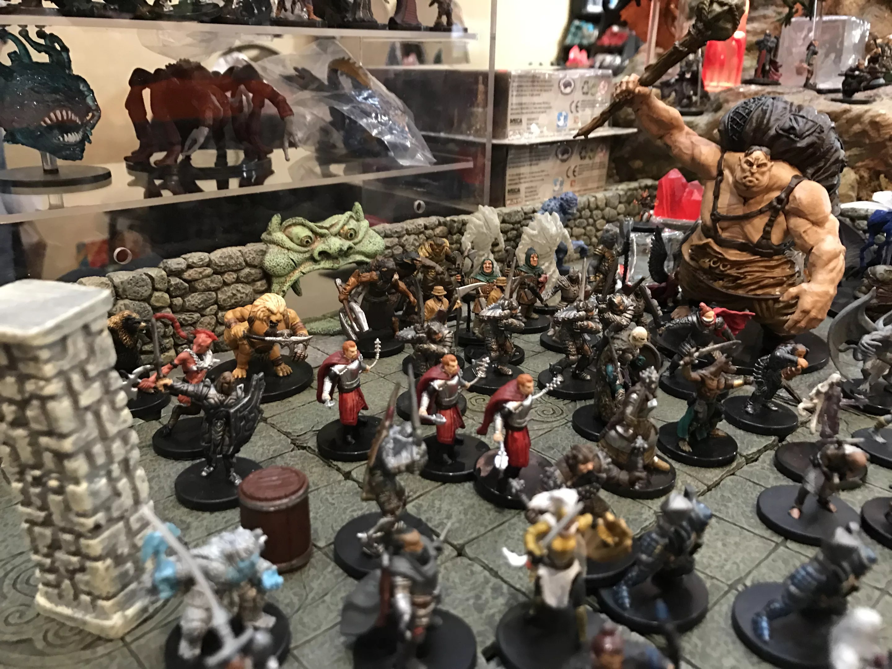 Where would the hobby be without all those weirdly-shaped dice? Polyhedrons are where it’s at, man, in every color of the rainbow. Metallic? Got it. Made from meteor rock? It’ll cost you, but sure. Twenty-siders the size of your head, as well as ones too tiny to actually read (especially if you were around for GenghisCon 1)? It’s all here. Name them, protect them, store them in your Crown Royal bag…gamers love them some dice.