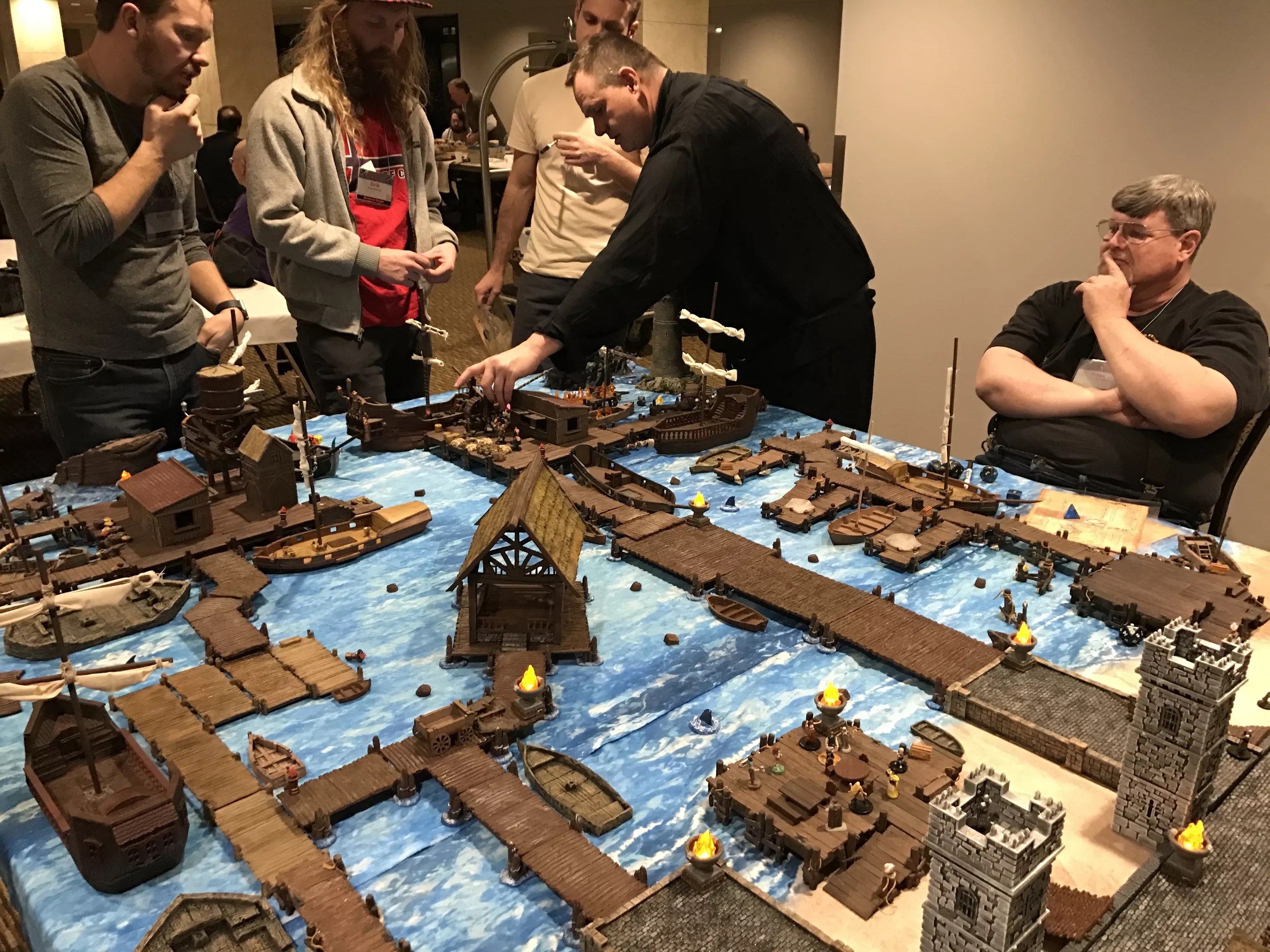 Arguably the heart of the gaming convention is role-playing, which – along with the war-gaming hobby from which it came – served as the reason for the con’s initial creation. RPGs have changed a lot since the early days, and in some ways have come full circle: With 3-D printing more widely available, the physical dungeon walls, sailing ships, even whole towns are able to lay out and bring the game to life. Many of these gamebsettings are works of art unto themselves: medieval cities, dusty Old West streets, the open seas and torch-lit pirate docks. Today it’s a far cry from notebook paper, a pencil, and a small bag of dice.