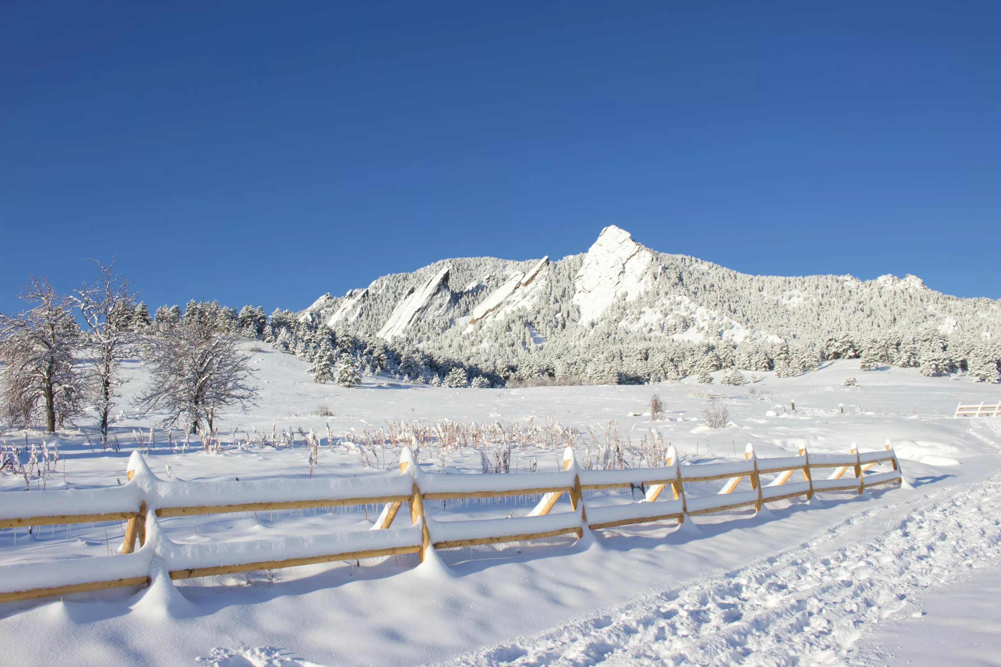 Views are hard to beat on the Green Mountain Loop via Chautauqua Trail. Admire the iconic Flatirons, Indian Peaks and city of Boulder as you climb a hefty 2,614 feet. Given the considerable elevation gain, this trail is best suited for experienced hikers, especially in winter. It’s rated as Class 1, meaning no scrambling is required. However, around the 1.5-mile marker (heading clockwise), a short ladder connects the upper and lower portions of the trail. Fun fact: This unique feature was installed following the 2013 floods that heavily affected Boulder County.