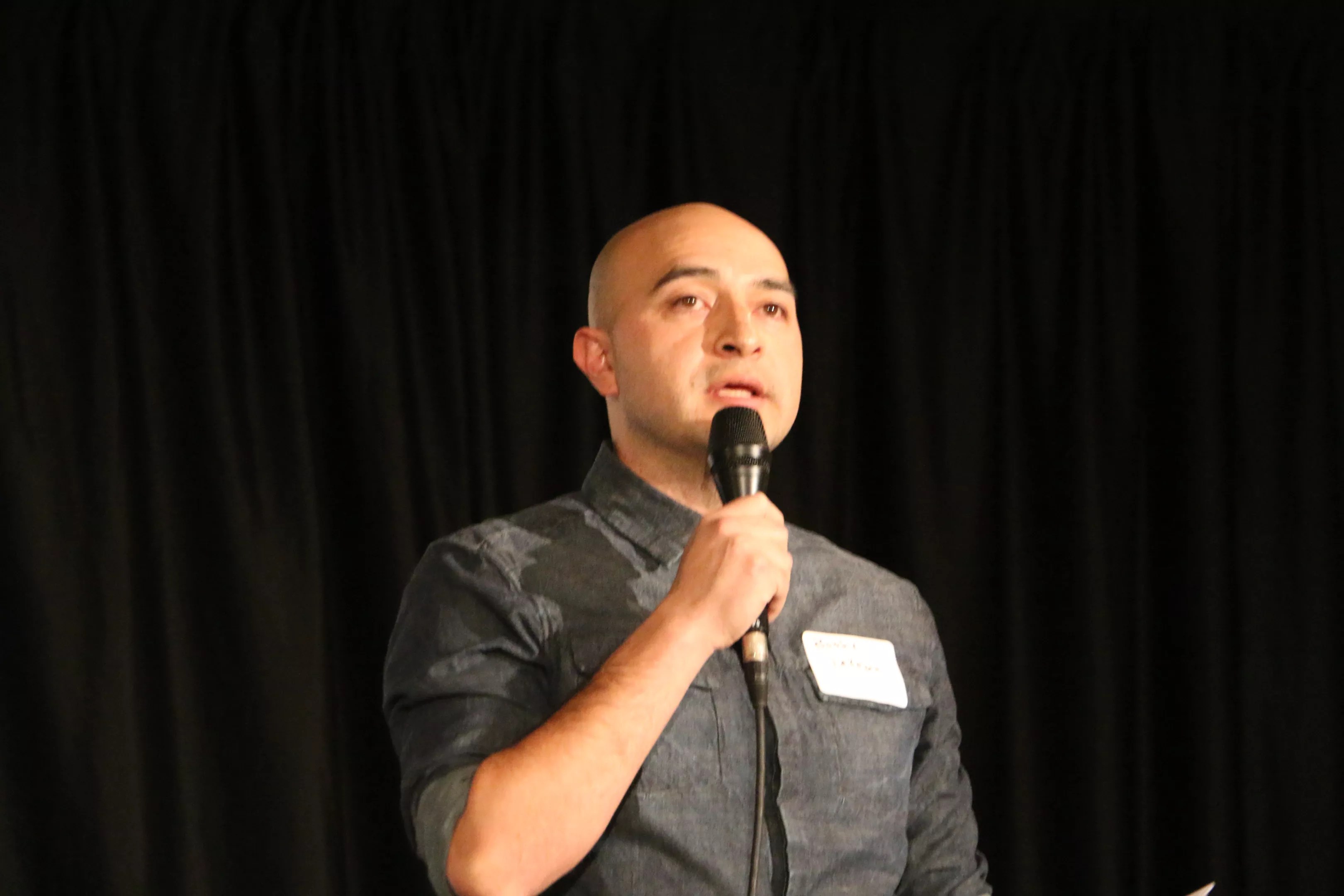 Poet Bobby LeFebre moderated Wednesday night’s discussion.