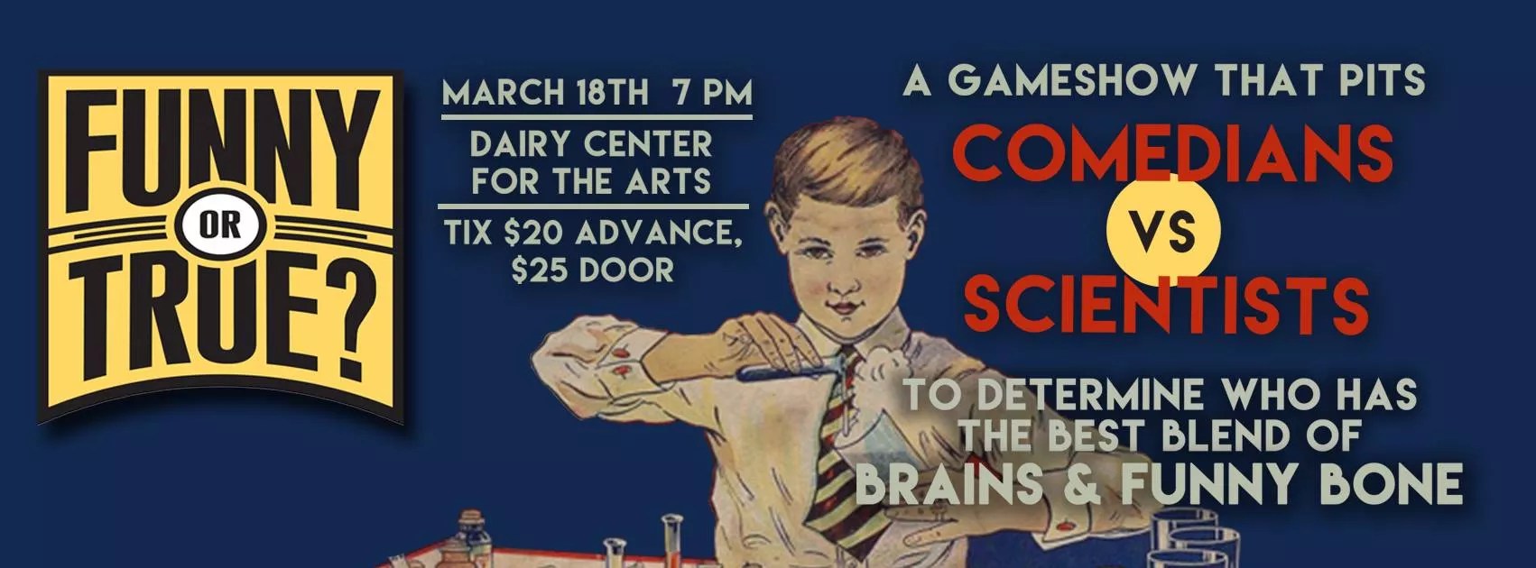 Part game show, part science lesson and a big part hilarious, Funny or True? sends comedians up against scientists in a battle of book learning and pure wit. But the best part of this spectacle is that the audience gets to participate. As contestants go head-to-head answering science-based questions, with answers truthful or outlandish, you – the audience – get to vote via smartphone for the best replies. Bill Farrand (Space Science Institute) and Stefanie Johnson (University of Colorado Boulder) face off against Janae Burris (Comedy Works New Faces champ) and Shane Mauss (Conan, Jimmy Kimmel) starting at 7:30 p.m. on Saturday, March 18, at the Dairy Arts Center, 2590 Walnut Street in Boulder, with friendly goading by Peter McGraw, director of the Humor Research Lab (HuRL) and co-author of The Humor Code: A Global Search for What Makes Things Funny, and guest emcee, Fort Collins comedian Mallory Wallace. Admission is $20 in advance at tickets.thedairy.org or $25 at the door.