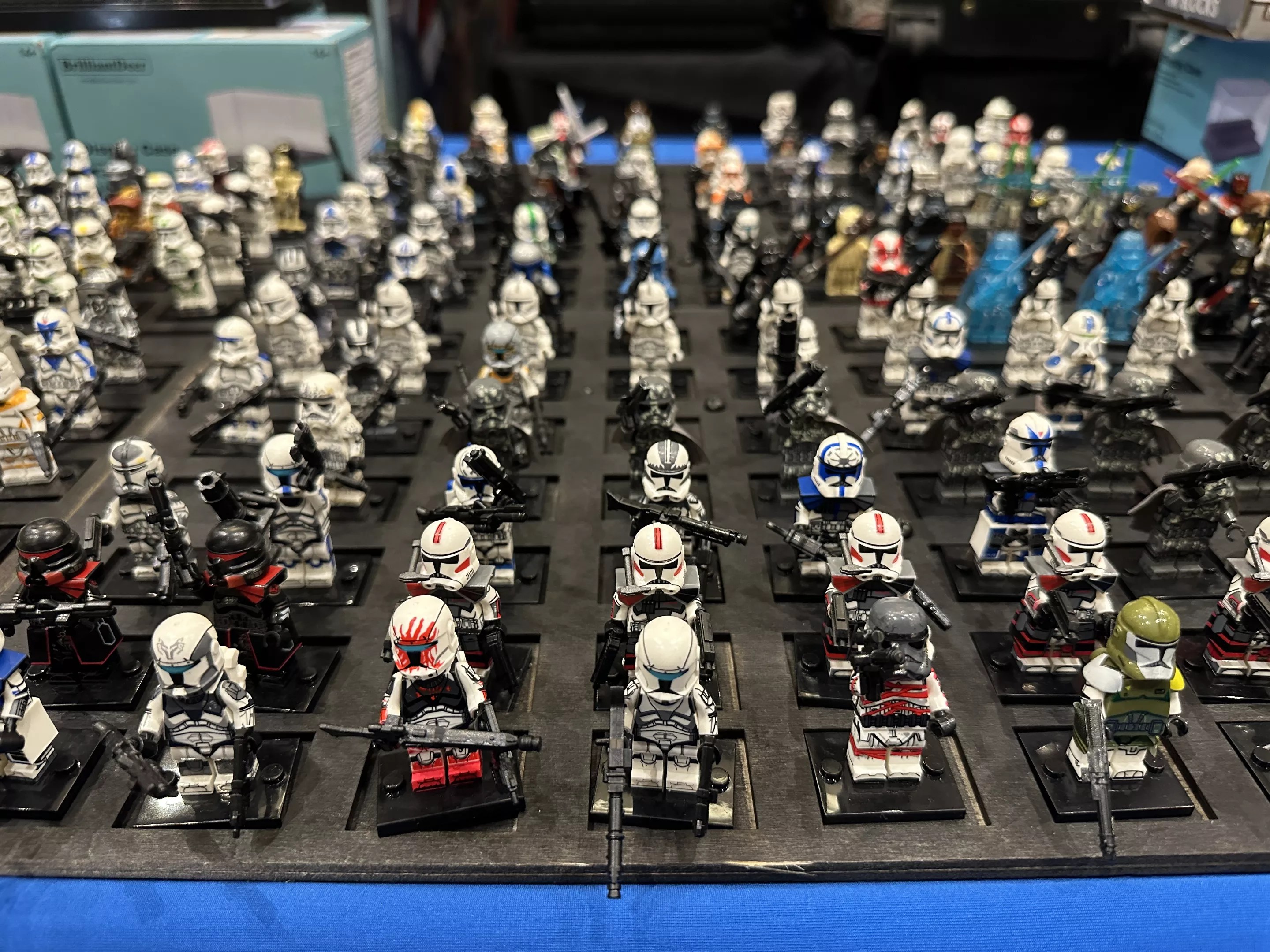 Since GhengisCon is a gaming convention and not so much a toy fair, there’s only so much in the way of playthings that don’t primarily exist in the theater of the mind. One exception: LEGO dudes like this army of Star Wars Troopers, painted up and ready to fight. Note that the Troopers here are backed by a couple of ghost Vaders and a lone Tusken Raider in the back ranks, along with other personalities. Plenty of options for massive battles on your own little single-environment planet in the Outer Rim.