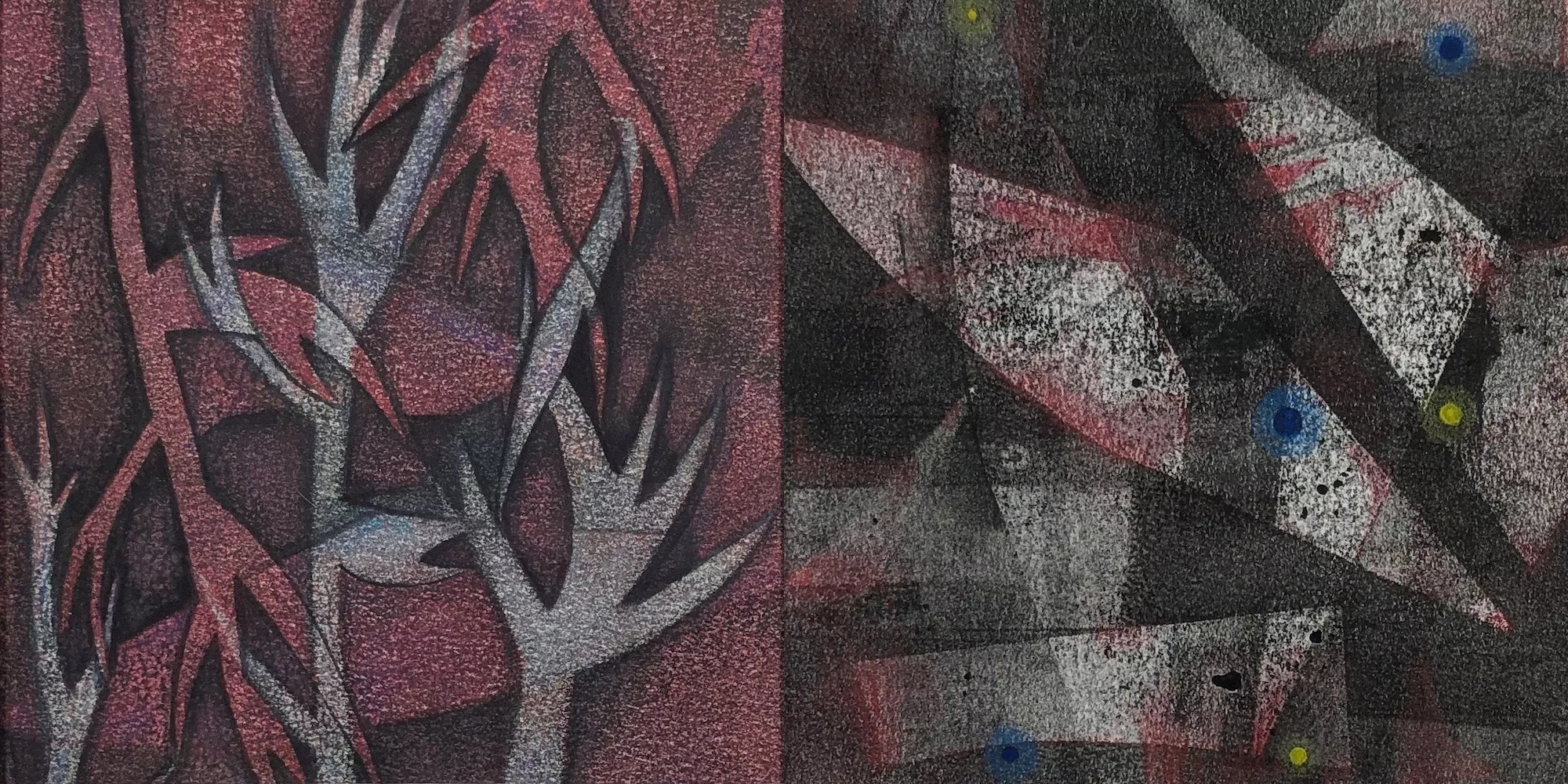 Lin Takeuchi, “Grasp,” monotype, watercolor, colored pencil.