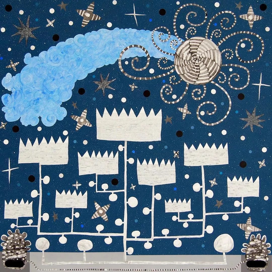 Enter the whimsical world of Katy Zimmerman, whose magical imagery celebrates the sun, moon and stars, and the spirit of Gaia, among other things, as she ushers in a show of works that range from weird landscapes under glass to affordable and beautiful full-color stickers.