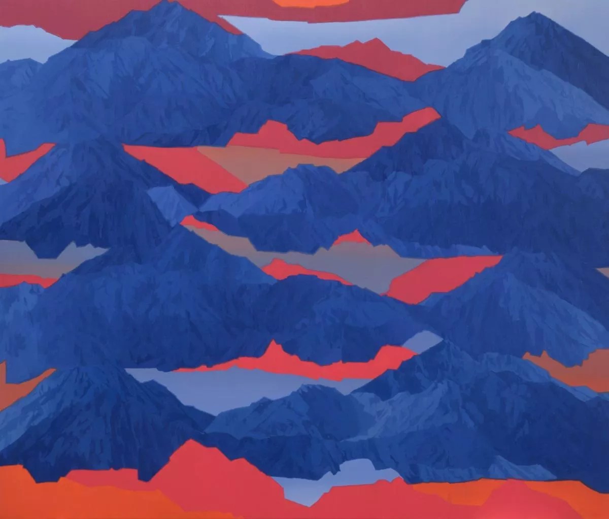 New Mexico-based painter Beau Carey brings a new batch of handsome, contemporary mountain landscapes to Visions West. Some works represent moon phases, shadows or sunset colors layered between geological peaks.