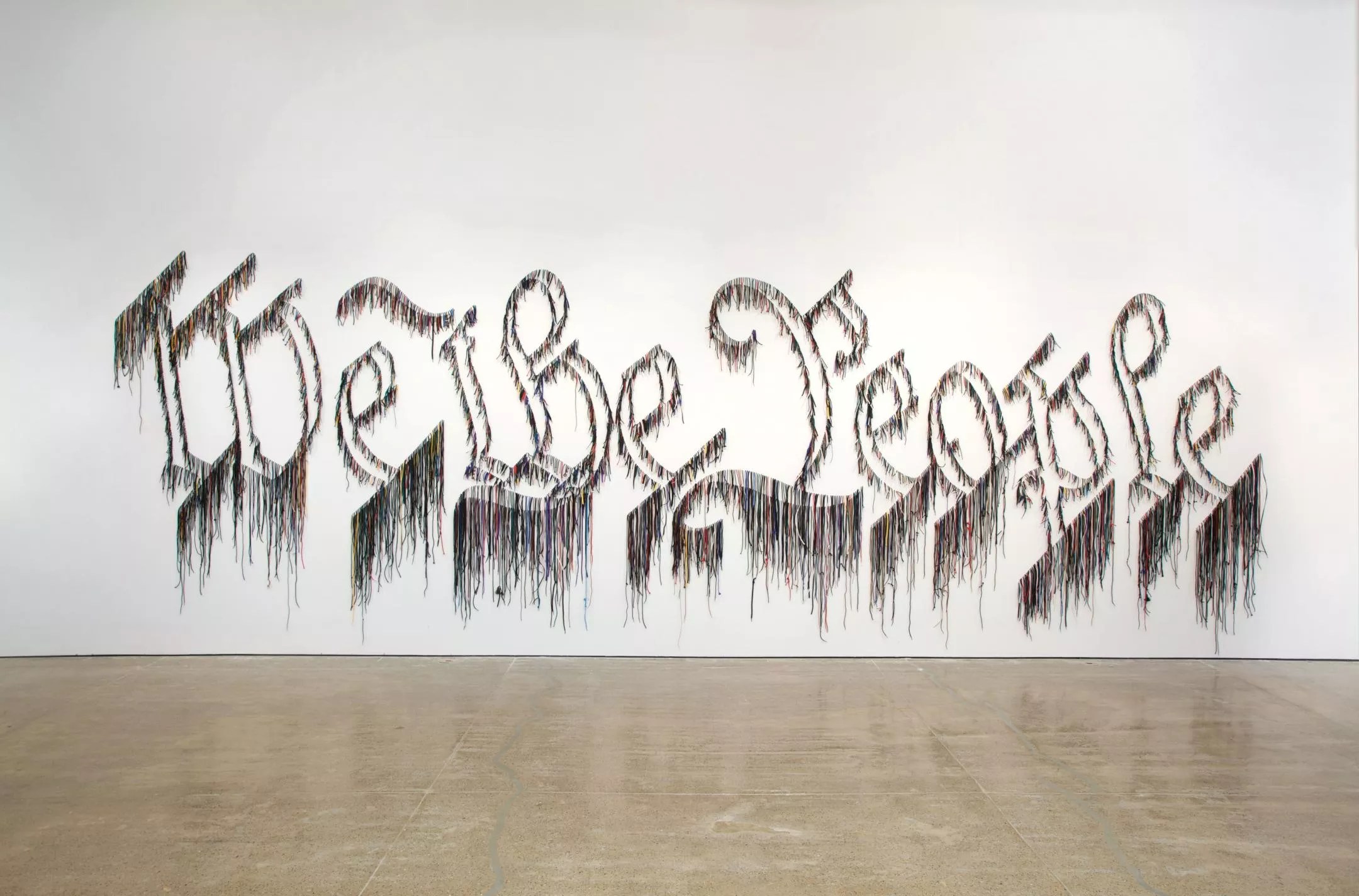 Nari Ward: We the People Pink wooden feathers: Jennifer Pettus Jennifer Pettus