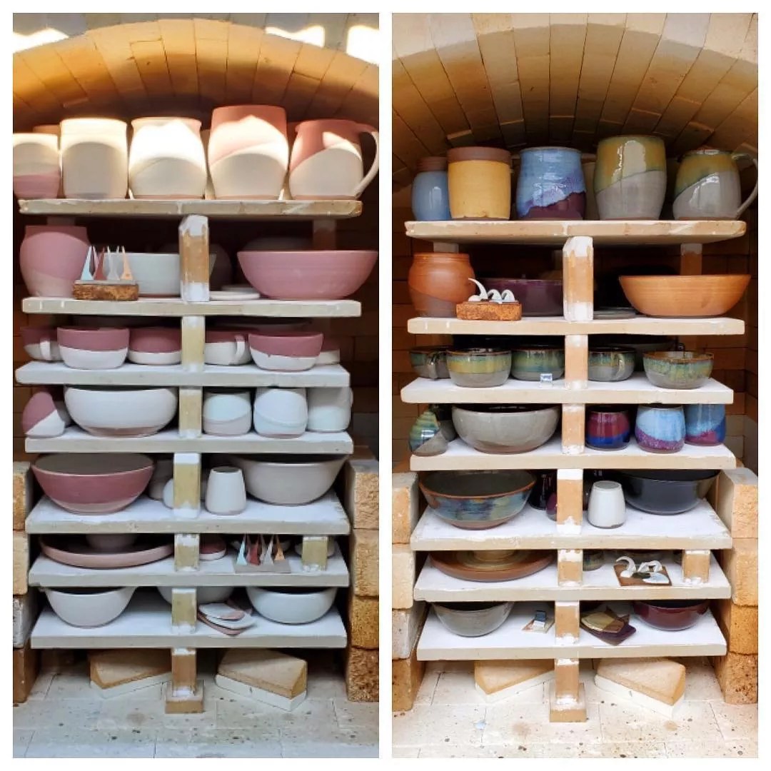 With Mother’s Day in the air, the weekend will be held aloft by pottery, clay, fiber and paper, art by women, hellos and goodbyes, adventurous art and, for the hell of it, robots. Is it summer vacation yet? Ceramics by Emilia Broadhurst Ealom, before and after firing. Emilia Broadhurst Ealom,