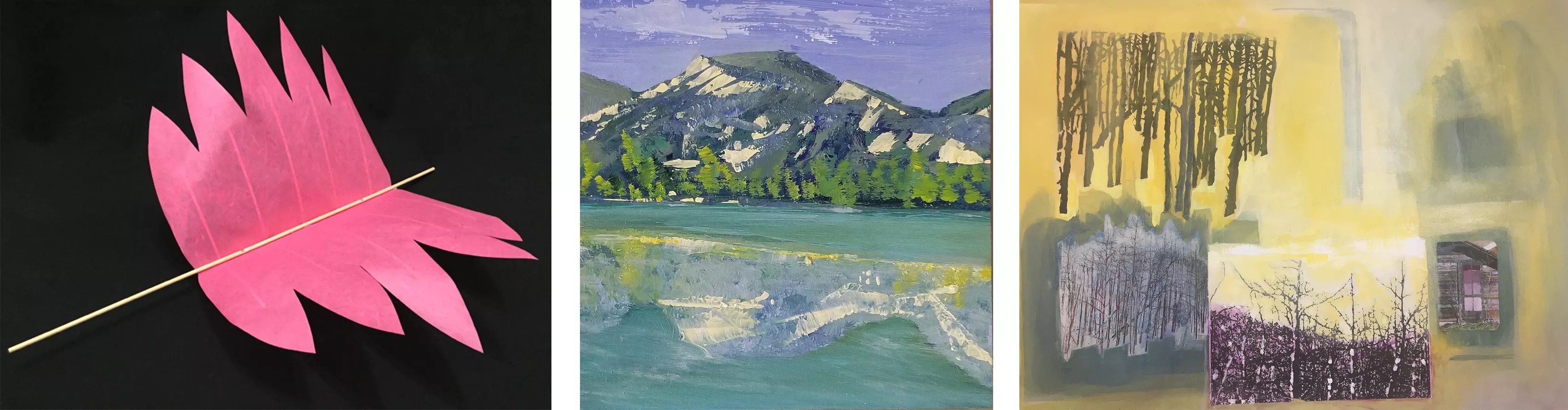 D’art members Barbara DeMarlie, Susan Hazaleus and Kim Roberts take different views on the natural world in June, translating trees, birds and the landscape in paintings abstracted in varying degrees and sculptures that flap their pink wings. In Gallery East, Maria Pacca’s installation Amagone! takes viewers through a forest of rolled cylindrical “tree canvases.” All together, these shows strive to show viewers what the world stands to lose to global warming.
