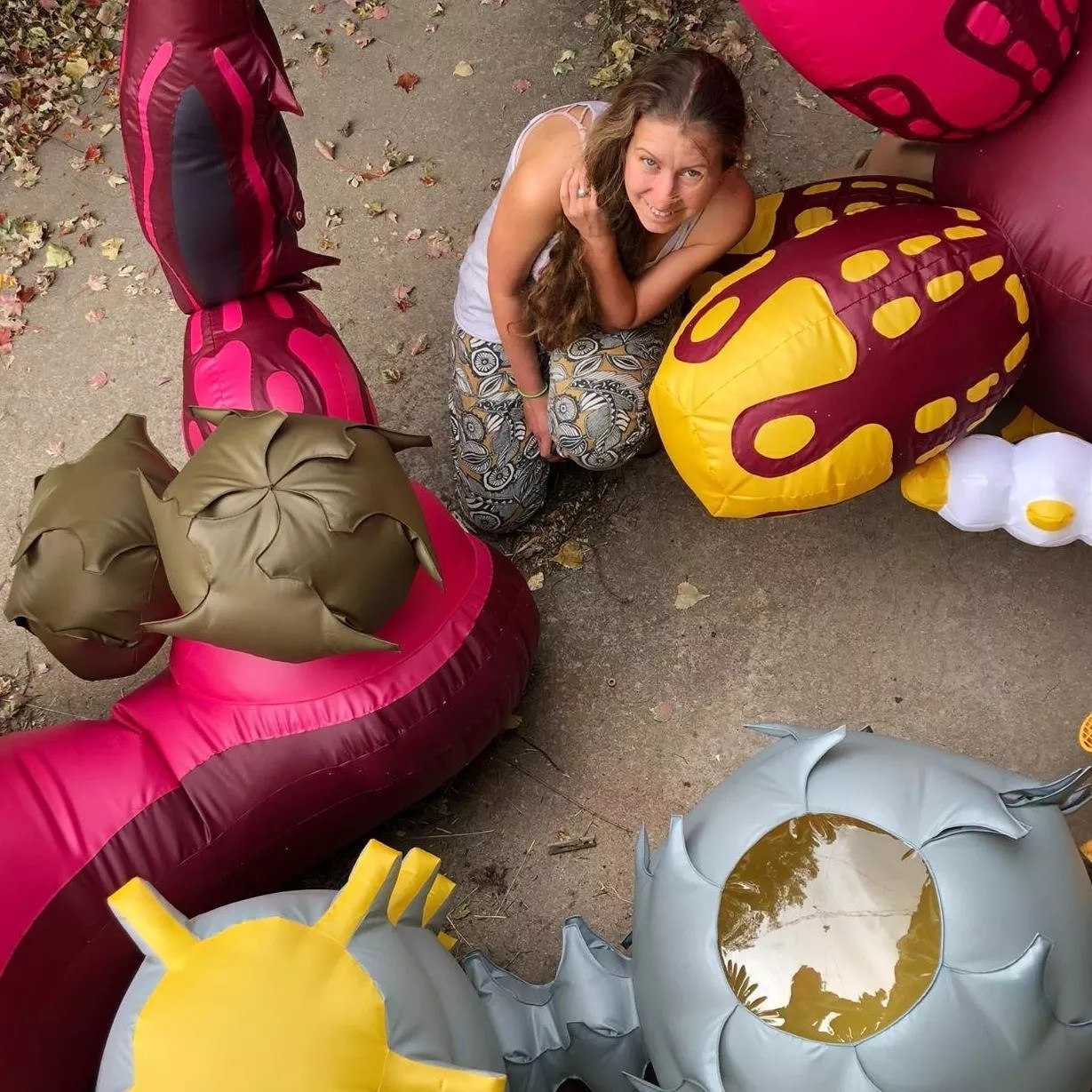 Inflatables artist Nicole Banowetz gets buggy with it at the Denver Art Museum.
