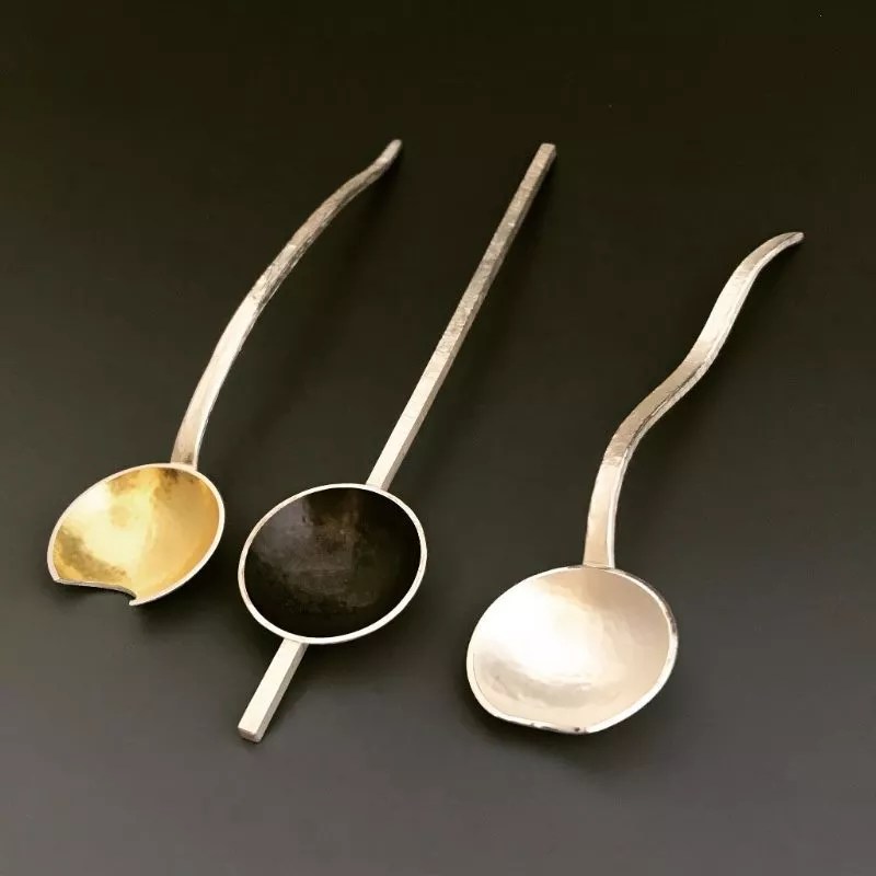 When First Friday collides with Denver Arts Week on Friday, November 2, it will create an explosion of exhibition openings, $52.80 art deals at galleries all over town and, as it happens, Día de los Muertos street celebrations connected to artwalks in the Santa Fe Drive and 40 West arts districts. On Saturday, November 3, take advantage of DAW’s Night at the Museums to visit the Denver Art Museum, the Kirkland Museum of Fine & Decorative Art, the Clyfford Still Museum and the Byers-Evans House Museum gallery in the Golden Triangle, as well as the close-by Museo de las Americas, all for free. You’ll also find plenty of art to explore in RiNo and other regional art districts. But just in case you’re still confused about where you want to land this weekend, here are some standout stops. Modern silver spoons by Kim Harrell. Kim Harrell