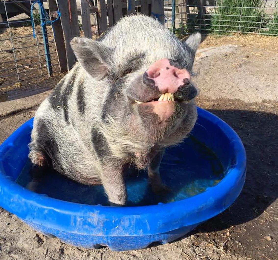 Cheese for the camera with a rescued pig at Resolute Brewing.