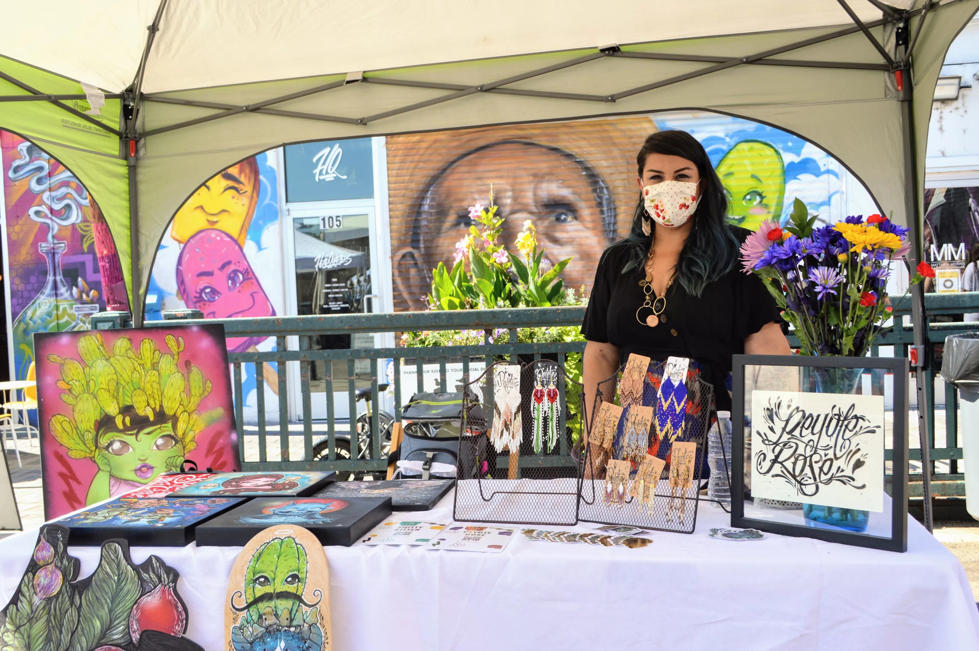 Work by Markham “Shitty Kitten” Maes @shittykitten1 and Peytoe Rose Provisions @peyote_rose_.