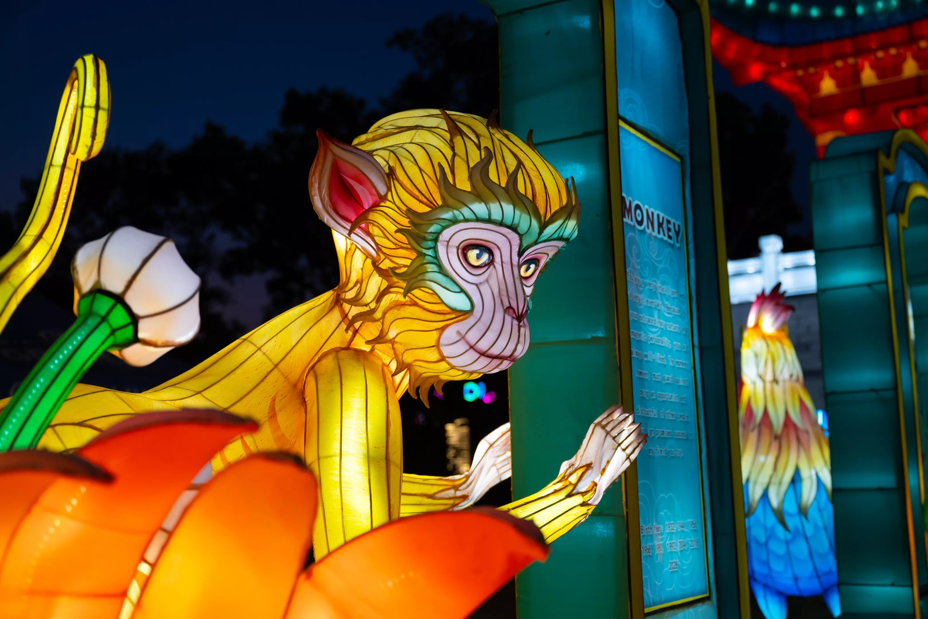 Bright Nights at Four Mile Historic Park’s monkey lantern installation.