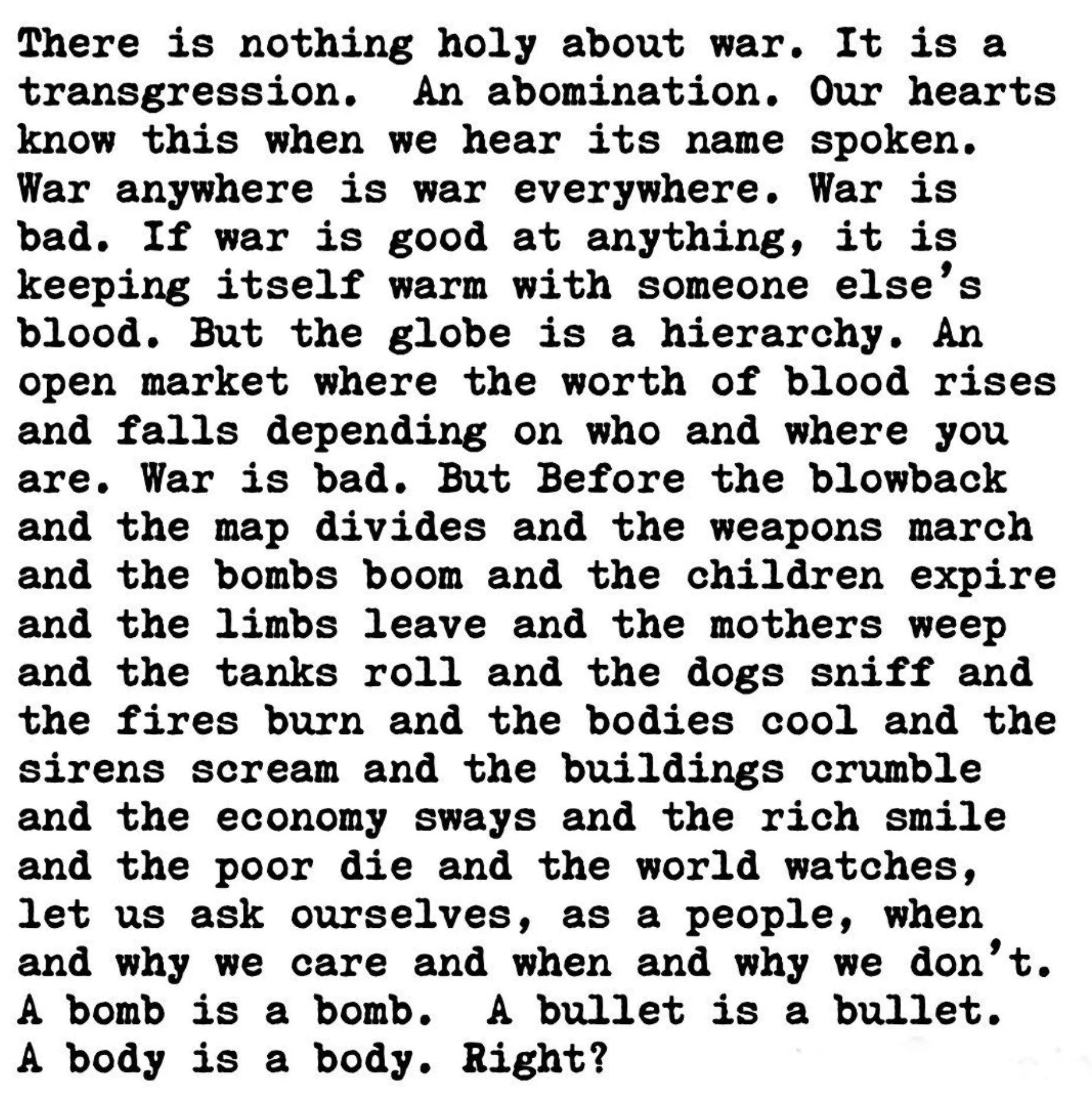 The format of LeFebre’s posts are as stark as their messages, with a square white field written over in black Courier font. “These are things I don’t edit,” LeFebre explains. “These are just things that literally just come out. But I feel like that’s the responsibility of the poet: to respond to the moment in a way that distills and creates conversation and discourse around what we’re living through.”