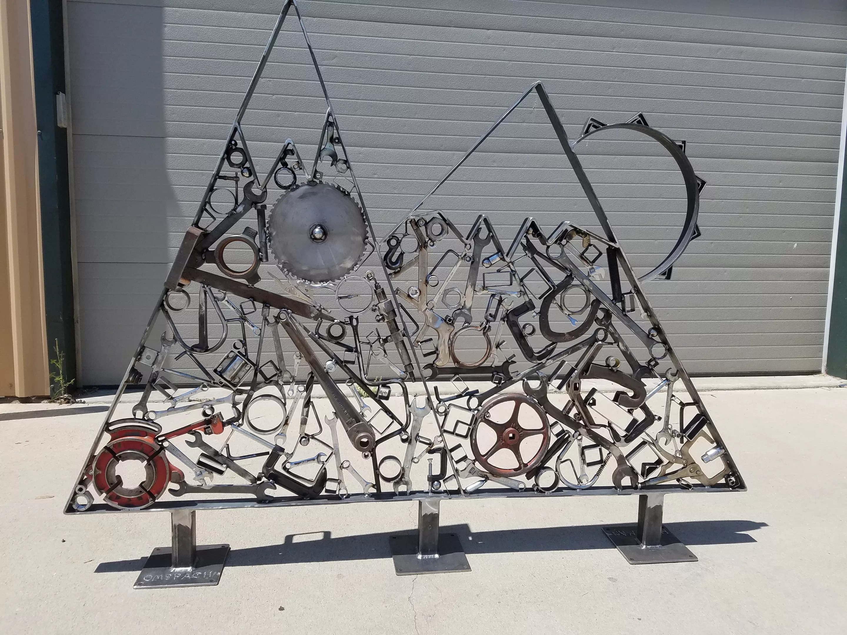 Now the bike racks are done and have homes in RiNo. Their steel-wrought frames, which depict triangular mountain landscapes made from a variety of metallic shapes and found materials, can fit four to eight bikes each. At Velorama, you’ll be able to spot two outside the RiNo Art District office, at 29th and Blake streets, one at the 7-Eleven on 31st Street and Brighton Boulevard, and another outside the Rackhouse Pub, also at 29th and Blake.