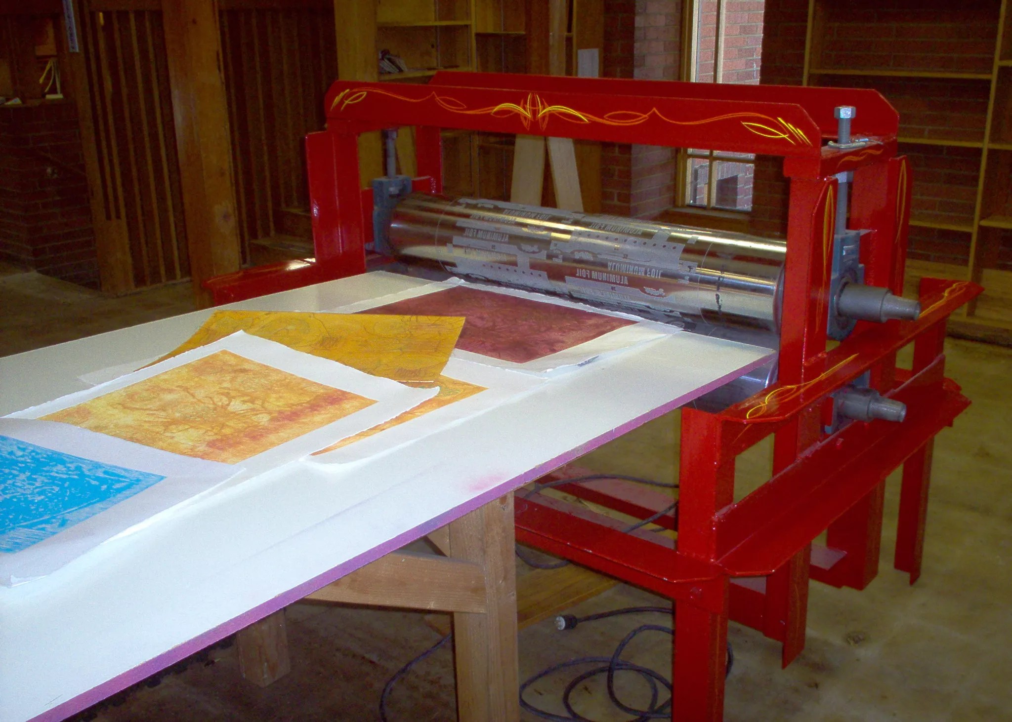 Hop on the Mo’Print train and see what happens everyday at Red Delicious in Aurora, one of the metro area’s fine printing presses, best-known for its Big Red Delicious Press, an oversized, four-foot-wide, red-enameled monster built from recycled parts. The co-op will host a member show at the nearby MLK Jr. Library, as part of the Month of Printmaking; the press itself will also have an open house on March 26 during Mo’Print’s Studio and Print Tour.