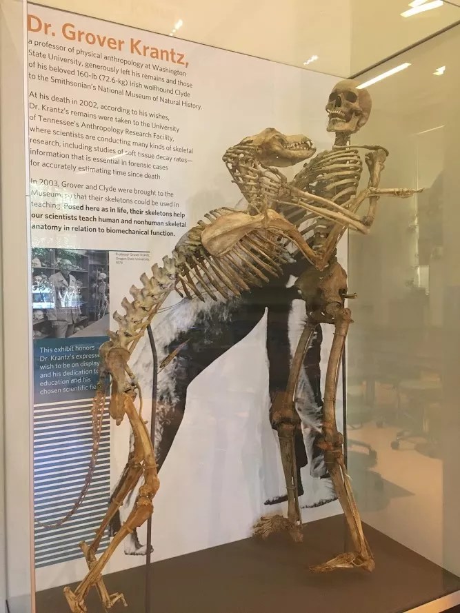 Grover Krantz, a professor of physical anthropology at Washington State University, left his remains and those of his 160-lb Irish wolfhound Clyde to the Smithsonian