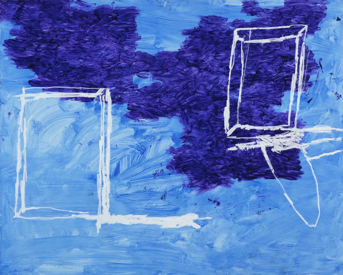 The paintings here represent a straightforward continuation of the aesthetic and narrative interests that Stockman has explored all along (birds, the nature of the figure, conveying emotion), yet some are notably more painterly than usual. Still, drawing continues to be the basis of Stockman’s art, with pronounced drawn components anchoring the works in this show. Some, like “We’re All Losers Now” and the closely associated though much more monumental “Walk in the Sun Once More,” are signature Stockmans covered with figural elements – in particular, depictions of busts. These elements have been loosely carried out and are sometimes smeared or covered over. In both paintings, the grounds are essentially white, recalling Stockman’s classic black-on-white drawings, but with judicious bursts of colors here and there.
