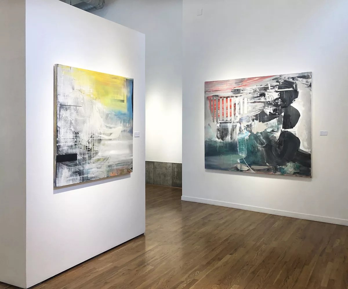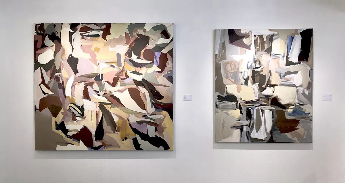 Riding this wave of interest, gallery director Bill Havu and administrator Nick Ryan co-curated Women in Abstraction, tapping the William Havu Gallery‘s stable of artists to fill out the gorgeous show. The exhibition design allows each of the painters to have her own space, with the single sculptor’s pieces displayed throughout on both levels, creating a trail through the sections given over to the other artists.