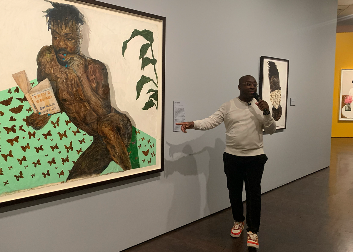 The DAM staff, led by Vicki and Kent Logan Curator of Modern and Contemporary Art Rory Padeken, has arranged the show with its usual style. Features such as a video installation of Boafo at work with close inspection of his technique and a well-stocked reading room full of his literary and visual influences (and comfy chairs) aren’t afterthoughts; they’re central to the experience. The curators hope it will encourage visitors to relax, enjoy the art and absorb its atmosphere.