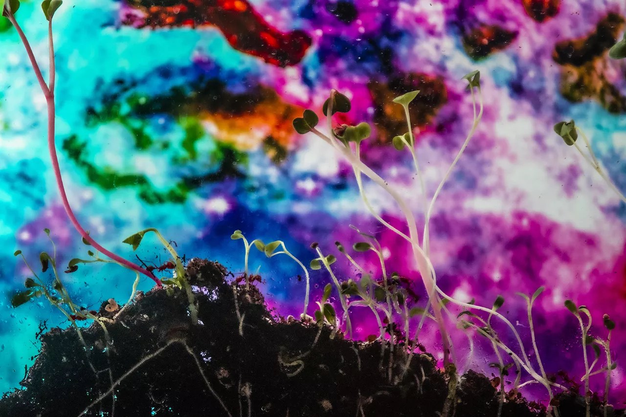 By now, he’d bought a house in west Denver, where he filled his basement with ant farms. “I stared at them for a long time,” he recalls. “I loved it. I would just invite someone in – maybe a Jehovah Witness would show up and want to talk to me, and I’d be like, ‘Let me show you something!’ Then I bring them down into my basement to look at my psychedelic ant farms, and it’s just, like, a Tuesday afternoon; they’re not expecting it. I would go down first, and I would turn around and watch them walk into the room and see their face. Like, it was a huge joy for me, just the confusion, but also them seeing it is really beautiful.”