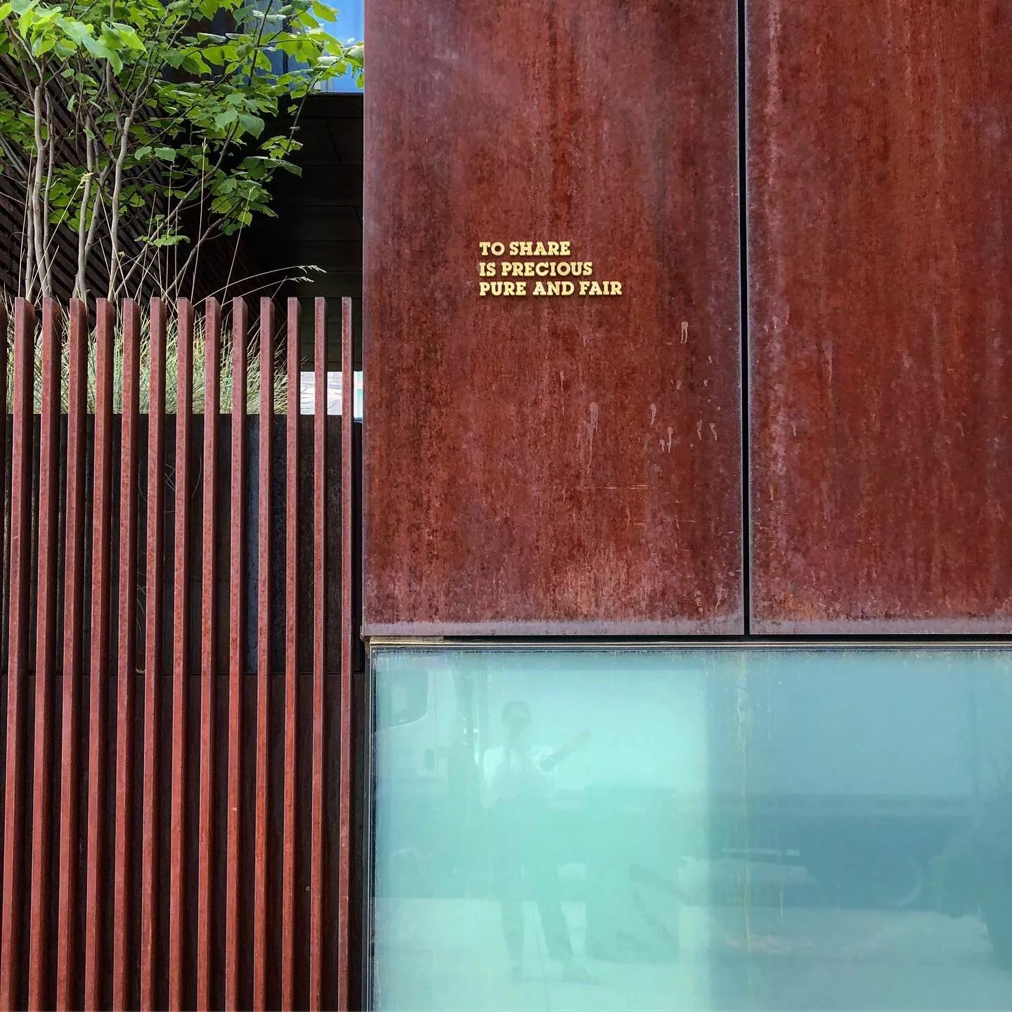 How is that vision working out? Stell’s world is spinning: In addition to opening BCHQ, which will have public hours and require staffing accordingly, she’s still rolling out Monumental, a large-scale critical look at what public monuments mean to the city’s residents who live among them. She’s also actively facilitating Mexico City-based artist Anuar Maauad’s Share project, which involves the placement of 100 small-scale bronze text installations with a quote from a song by Marvin Gaye: “To share is precious, pure and fair.”