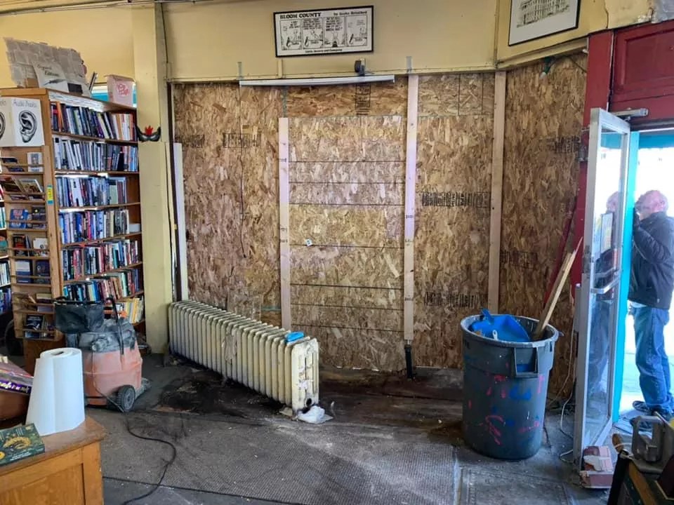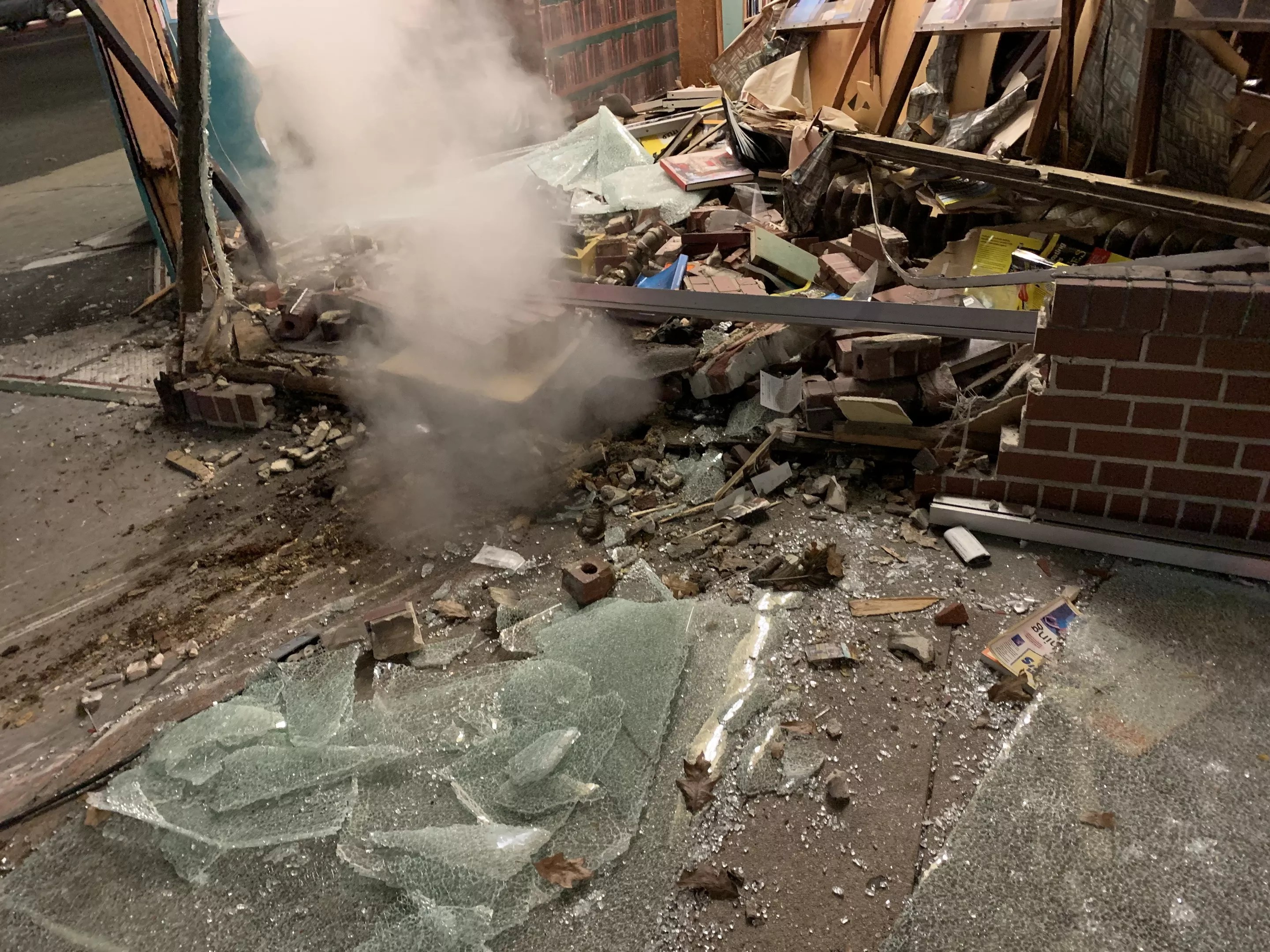The rest of the store was saved by a heavy, old-fashioned radiator that blocked the truck from getting further inside. However, steam from the burst radiator hit the rare books and prints on the shelves.