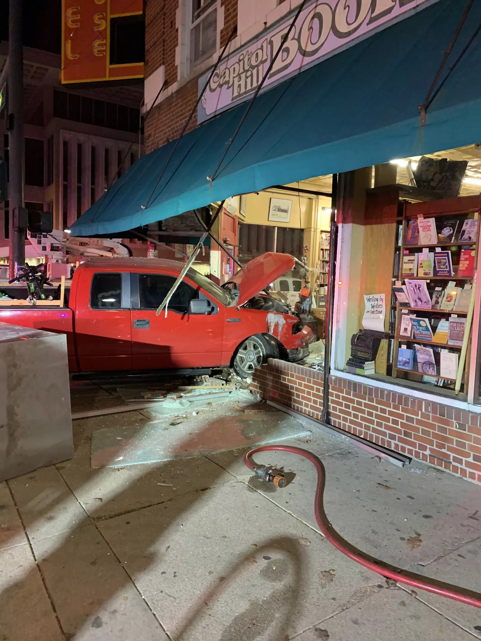 Capitol Hill Books is closed today, November 19: A truck carrying Lime scooters crashed into the glass storefront at 300 East Colfax Avenue at 8:40 p.m. November 17, smashing into a glass bookshelf holding the store’s most expensive rare books.