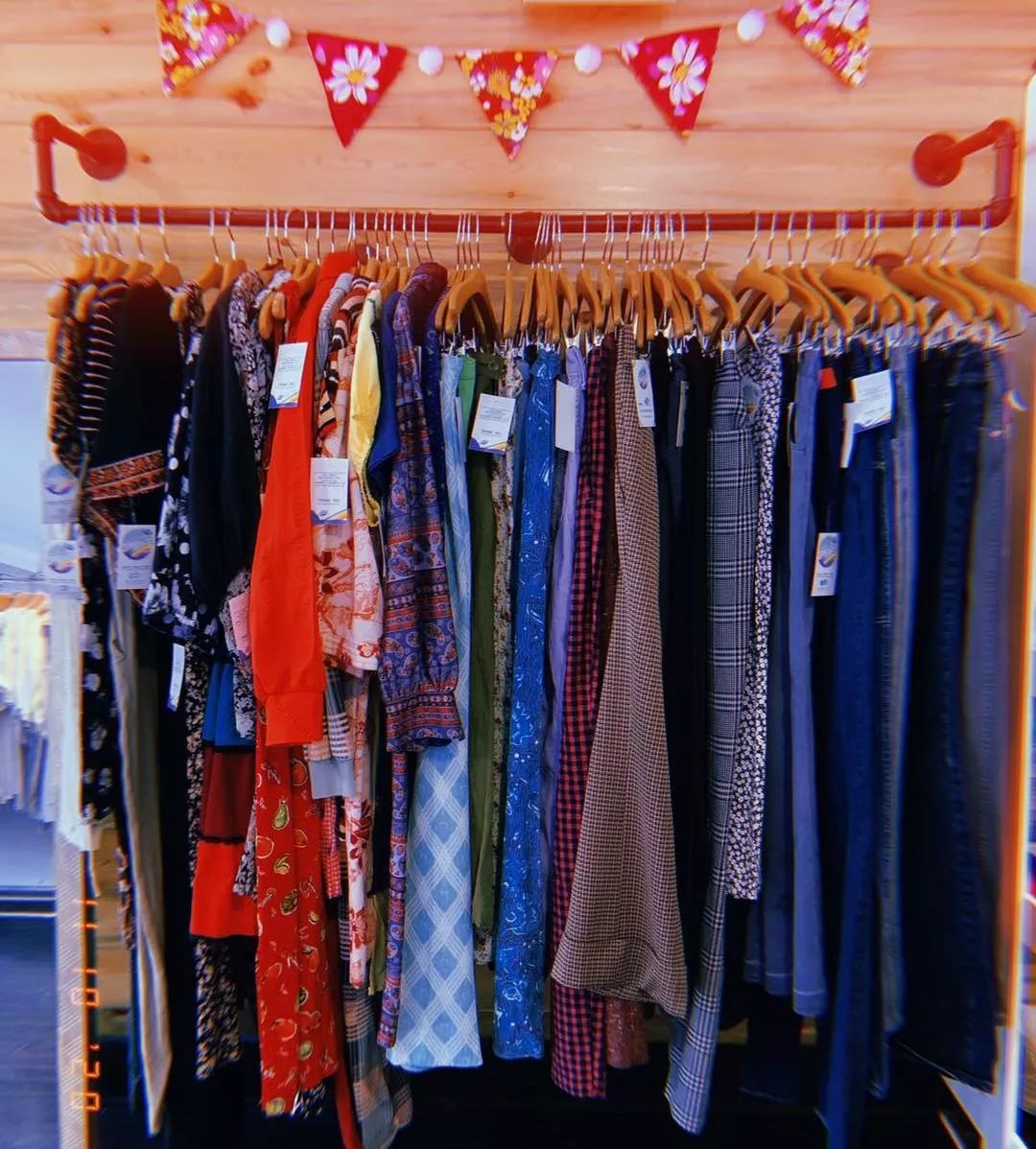 Sip a cocktail while you look through racks of vintage clothing at Garage Sale Vintage.