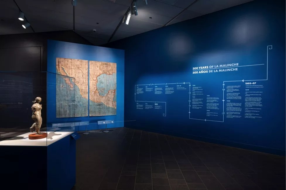 A map of Malinche’s journey with Cortés greets visitors.