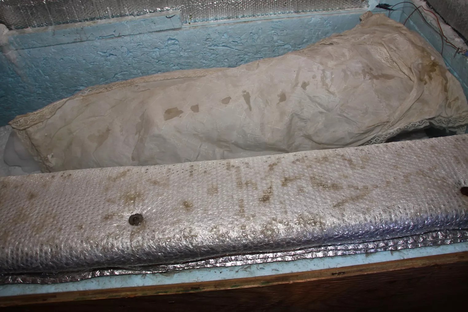 Upon learning of Grandpa Bredo’s presence, the town council passed an ordinance stating that it is illegal to have “the whole or any part of the person, body or carcass of a human being or animal or other biological species which is not alive upon any property.” But because of pressure from the Bauges and cryogenic enthusiasts, coupled with the logistical challenge of shipping a frozen body back to Norway, Grandpa Bredo was grandfathered in as a Nederland resident. Today, a local is paid to drive up the mountain every two weeks to visit the Tuff Shed, where he loads Grandpa Bredo with half a ton of dry ice.