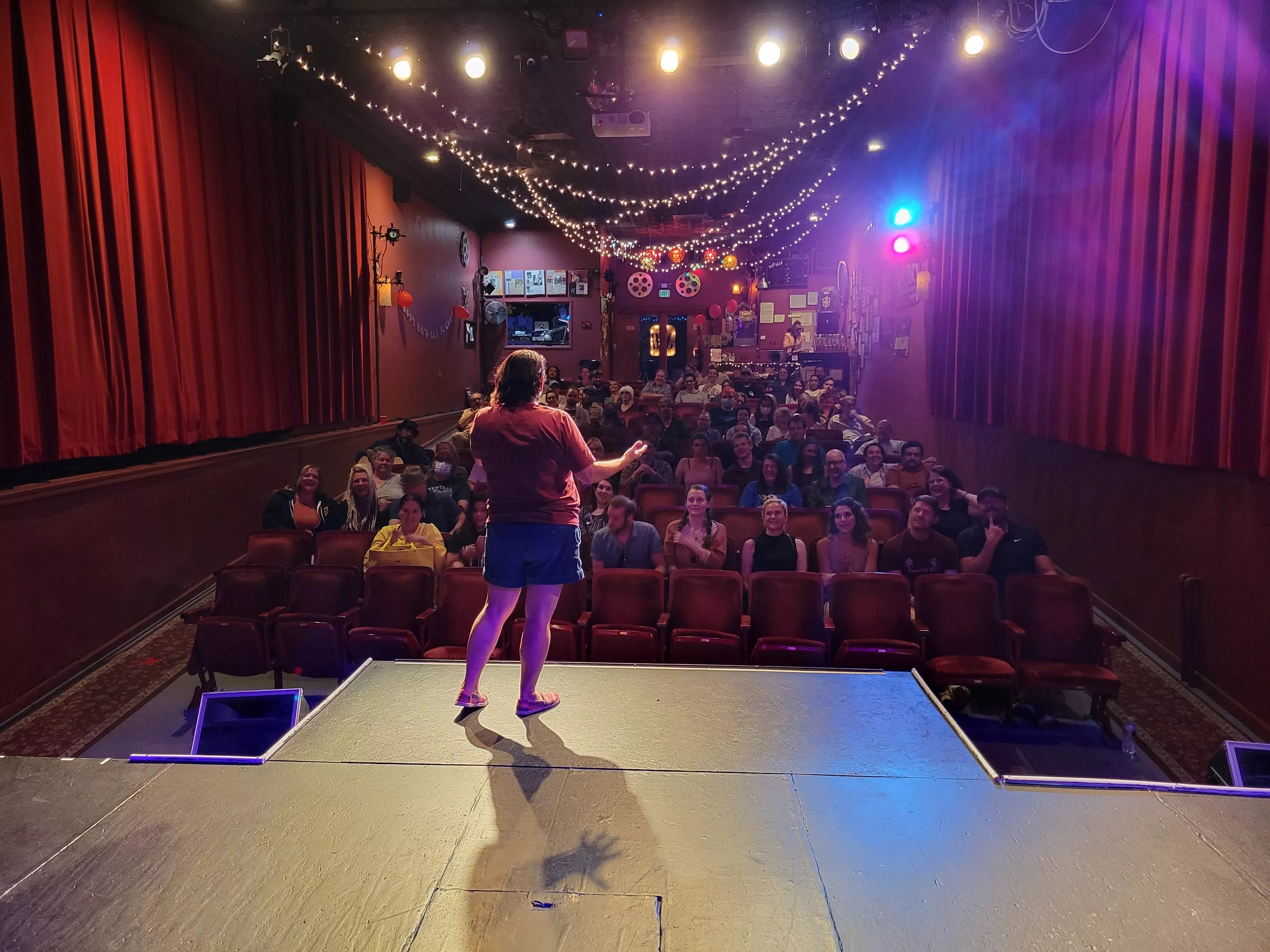 Yet amid the sweeping changes, the Bug Theatre, which offers a variety of regular programming as well as rentable event space, stands as one of the last vestiges of the once-thriving Navajo Street Art District. Inside, the theater still has its original charm: high ceilings, rows of theater seating that echo its past as a cinema, and a stage framed by two striking columns that invoke a classic, intimate feel. As the Bug celebrates its thirtieth anniversary this October, its resilience stands in stark contrast to the rapid gentrification around it, embodying the neighborhood’s creative spirit that refuses to fade.