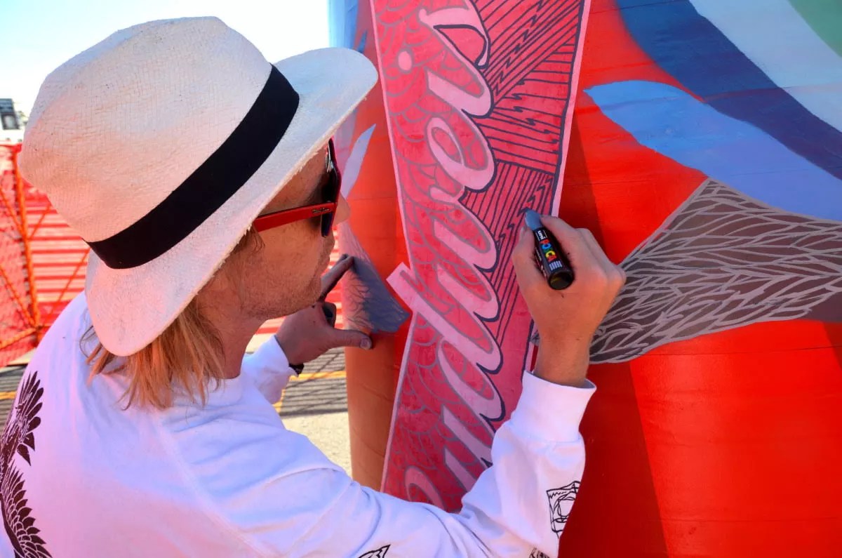 His vivid street-art collaborations adorn the walls of dozens of boutiques, breweries, bars and other businesses in Denver and across the country, and he’s helped curate and create major art-installation projects for brands including Visit Denver, the City of Denver, RiNo Art District, Ford Motor Company, X Games, Budweiser, Zumiez, Loveland Ski Area, Wahoo Fish Tacos, Academy 360 School, the University of Denver and Pabst Blue Ribbon. He’s shared snowboard-contest podiums with the likes of Shaun White and Travis Rice, and the Snowboard Camp Tour he founded to make freestyle riding more accessible for kids is now entering its second decade. He’s also the co-owner of So-Gnar, an umbrella collective responsible for the Snowboard Camp Tour, the So-Gnar streetwear and apparel line that he helps design, and the Shredded Beats hip-hop concert series he promotes. Another Pat Milbery collaboration, from RiNo Music Fest. Lindsey Bartlett