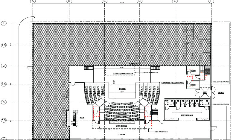 The floor plans for Phase 2 of the Miners Alley Performing Arts Center, created by Semple Brown Design, will expand the space into a 300-seat theater with additional rooms for community members and performances inside the venue.