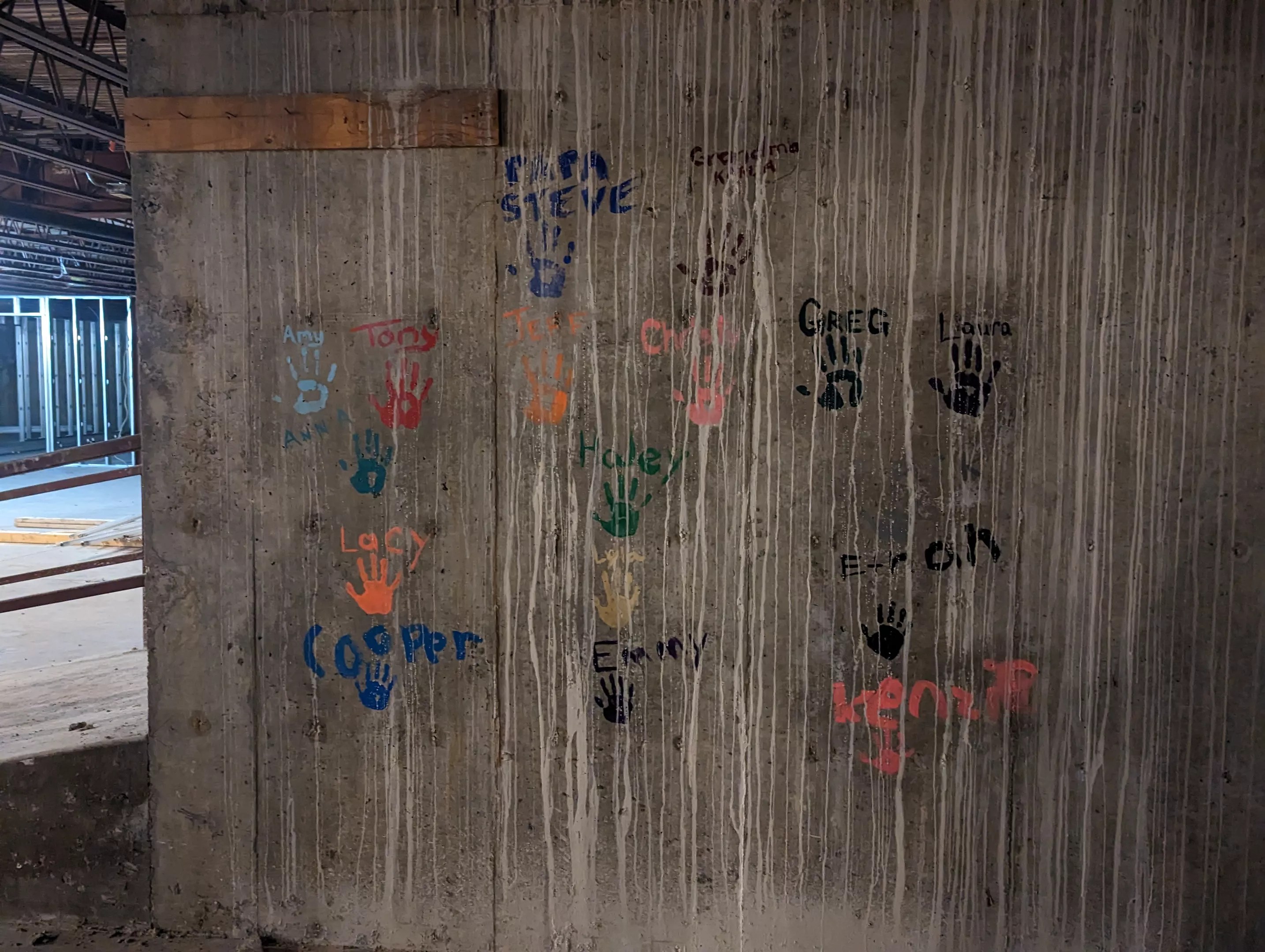 On their last night in the space, the family members of the previous owner put their handprints on a wall in the basement. Miners Alley Playhouse plans to keep the wall up in honor of the Meyer Hardware Store.