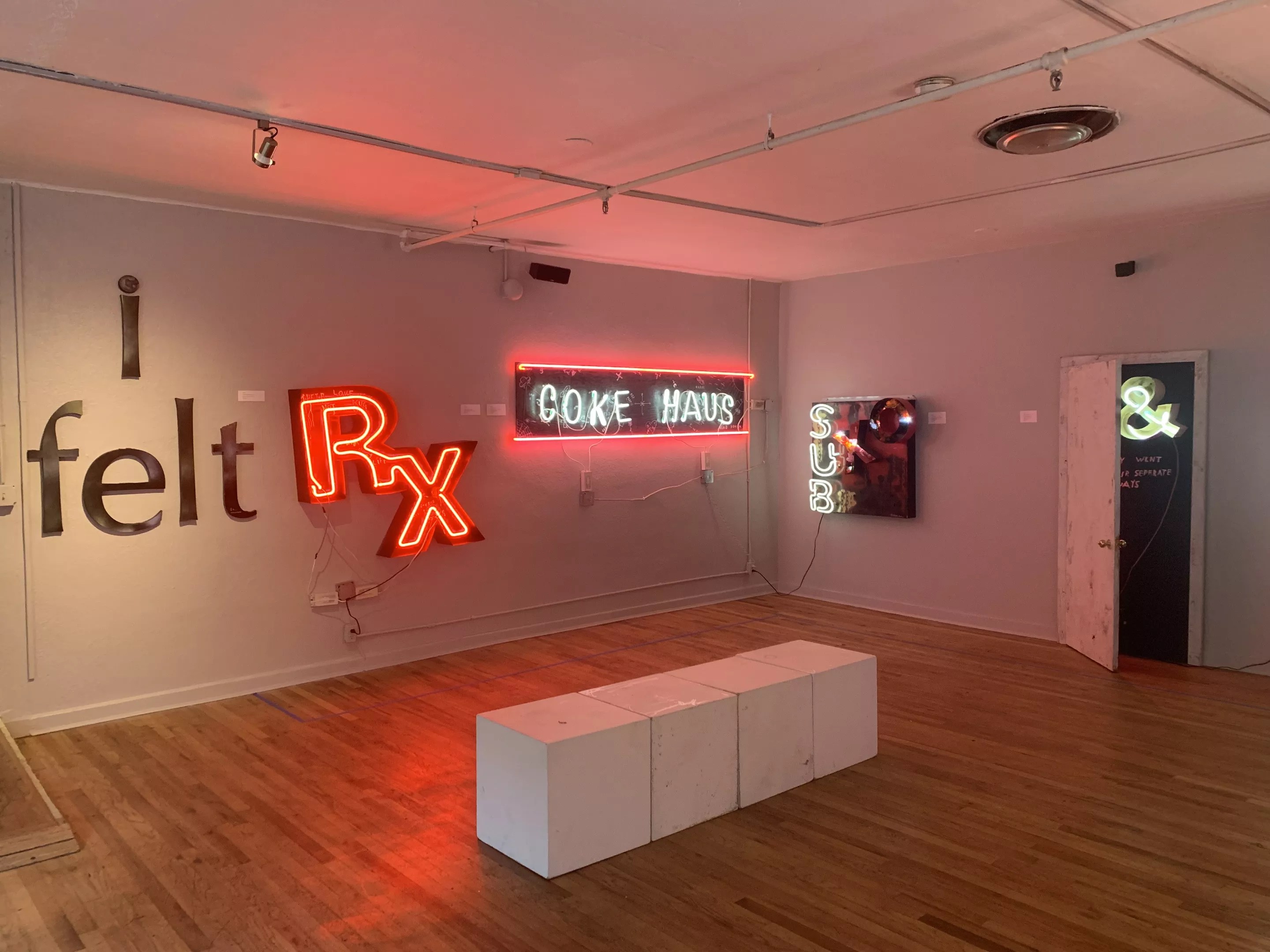 Bebout taught himself how to bend glass in the basement of Roostercat Coffee – which he and a friend took over in June 2018 – while managing the place as part-owner. He made thirty or forty pieces of neon art while simultaneously getting the coffee shop up and running again, and created a show that debuted at the now-defunct coffee-and-cocktail shop Bellwether in December that year. The show grew out of that space and moved to Edge Gallery, where it doubled in size as he kept making signs to add to the collection, then went to the Downtown Artery in Fort Collins in July 2019.
