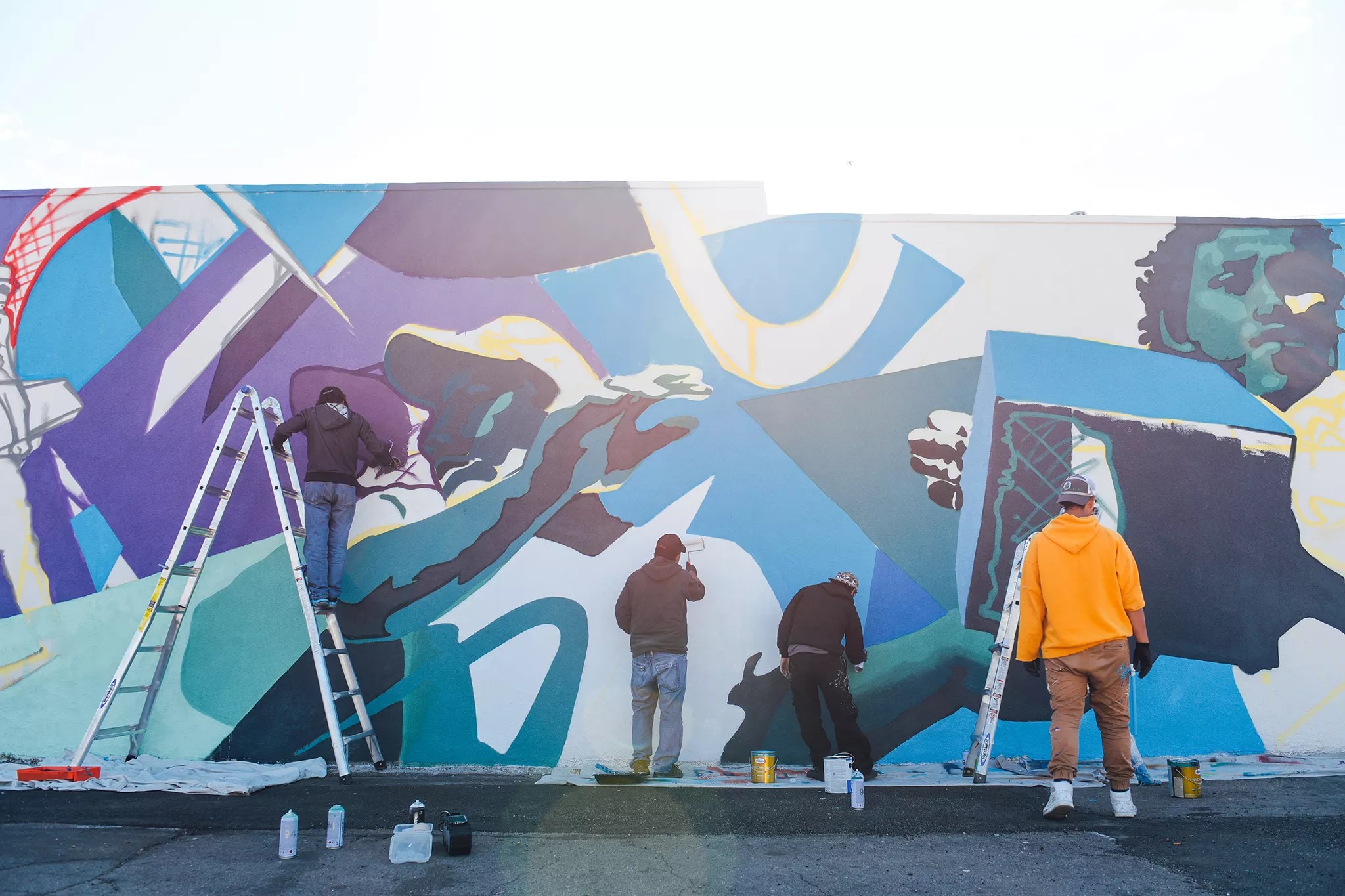 In Denver, new murals go up faster than most people can track; here are five fresh artworks created over the past few months (some just this week!), ready for you to see this weekend. Nelson Paredes (left), Abel Portillo, Bimmer Torres and Levi Domingas paint one side of the day labor center on Thursday, October 5, 2017. Kenzie Bruce