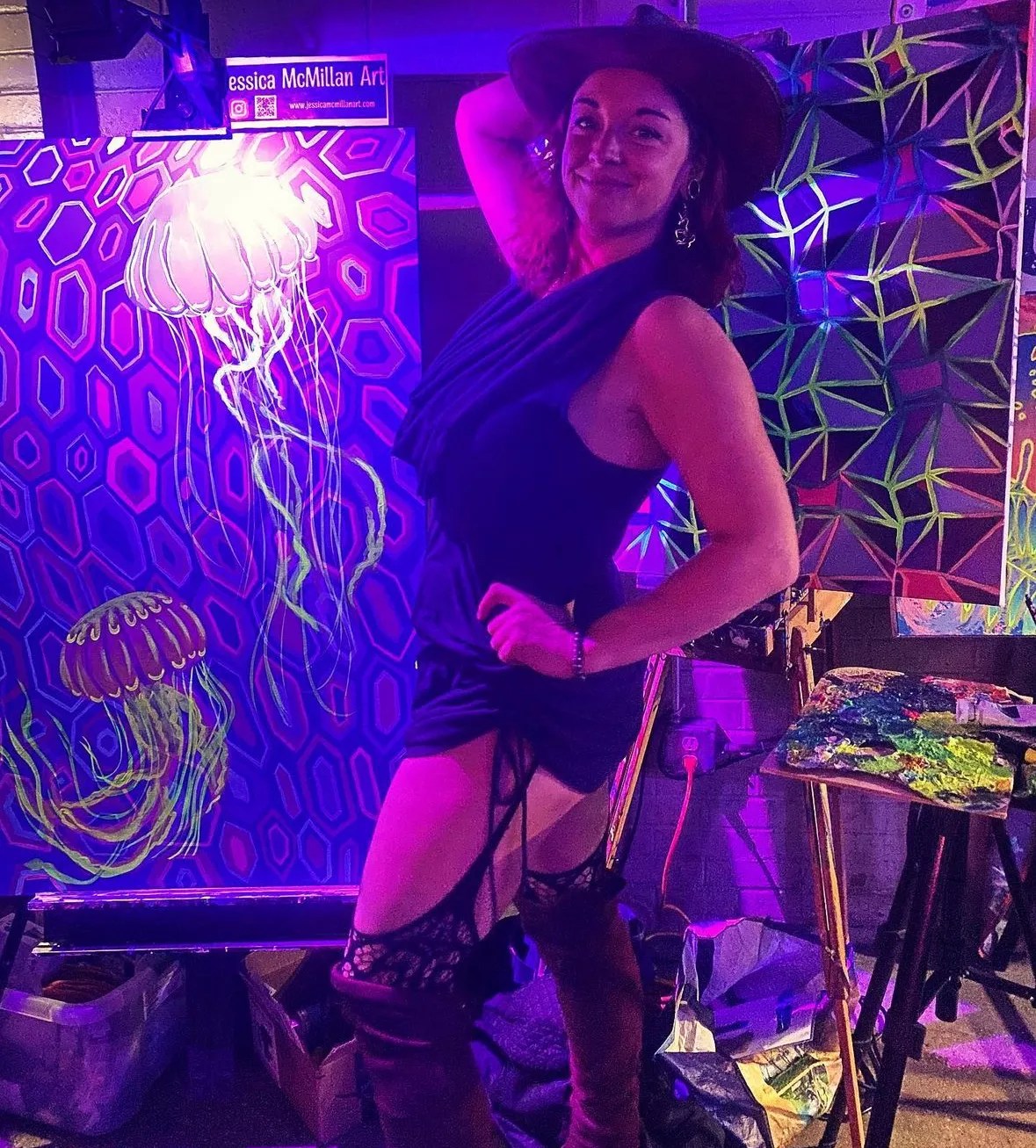 Denver presented a world of opportunity for Jessica, and she loved it here. She created several murals, including one of a rattlesnake that can be seen at Fiddler’s Green Amphitheatre, and was a constant presence in the live-painting scene, through which she made countless cherished friends while still maintaining longtime friendships across the country.